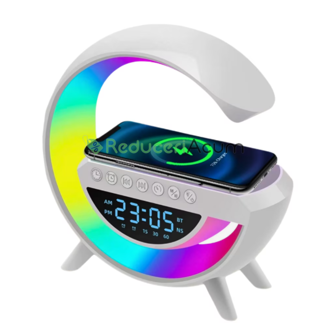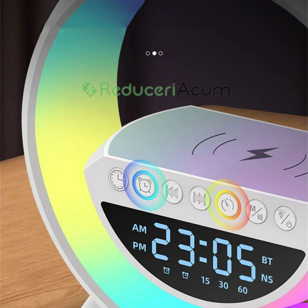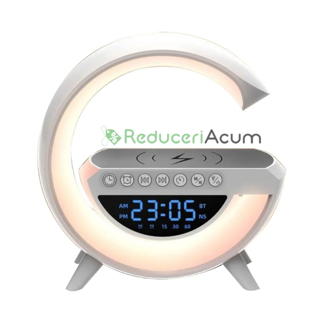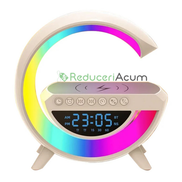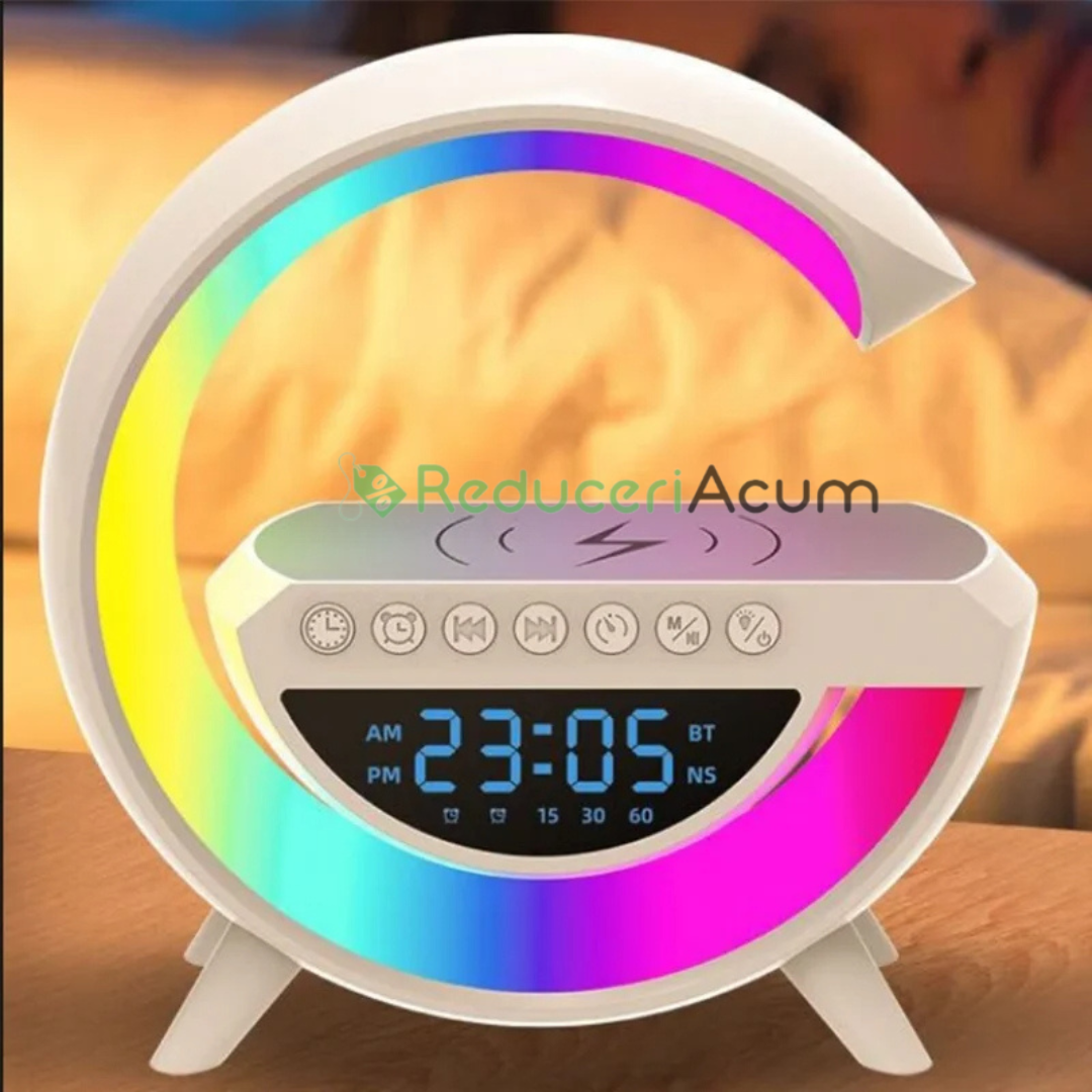 Lampa Smart LED RGB: O lumina smart cu marimea de:i (24cm * 8 cm * 23 cm), incarcator pentru telefon fara fir, difuzor 5W Bluetooth, lumina pentru somn, lumina de noptiera, ceas, ceas cu alarma, totul intr-unul. Puteti folosi aceasta lampa fantastica in timp ce lucrati, studiati, cititi si dormi.