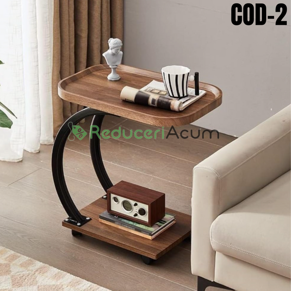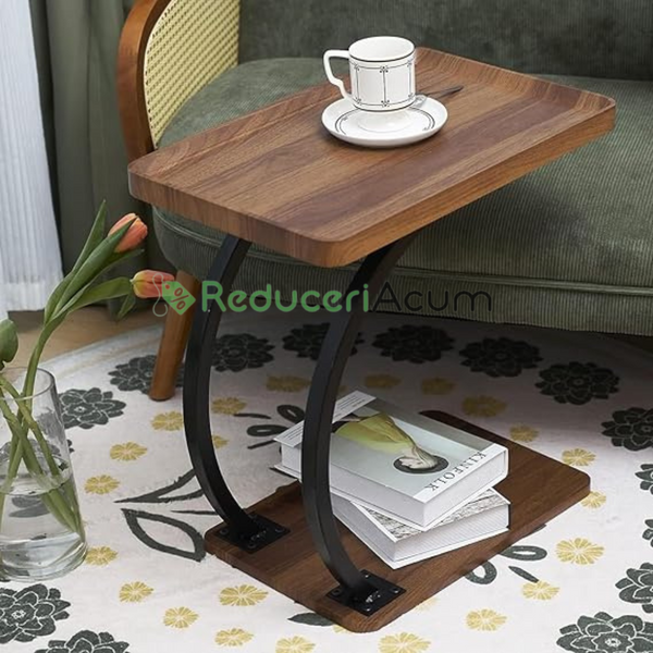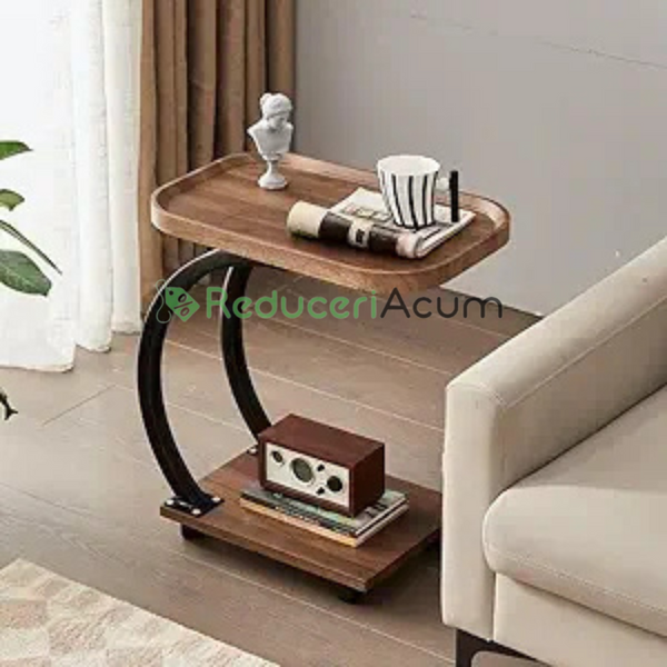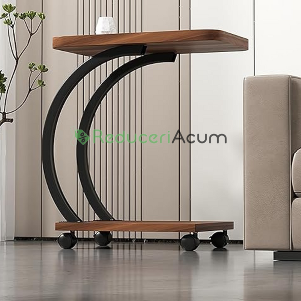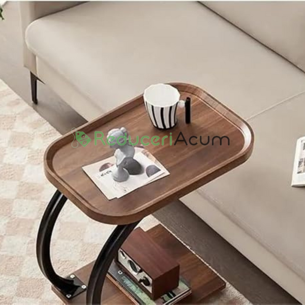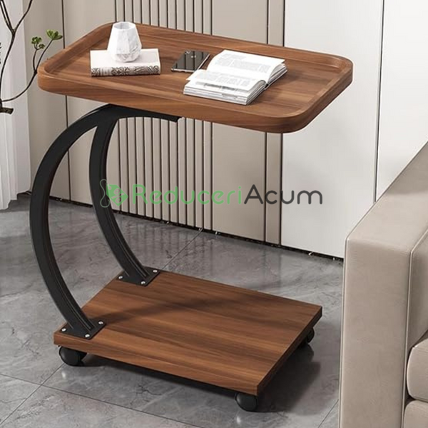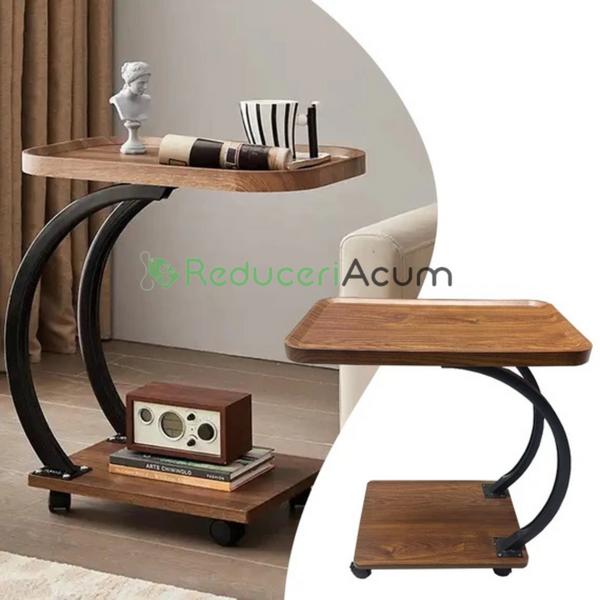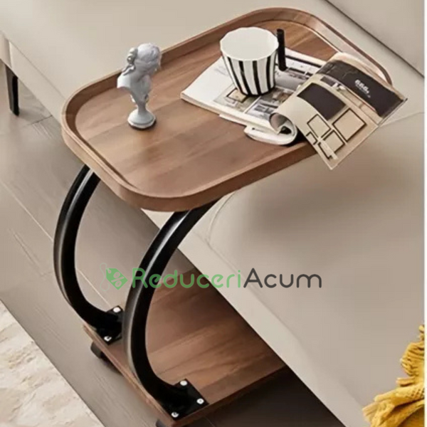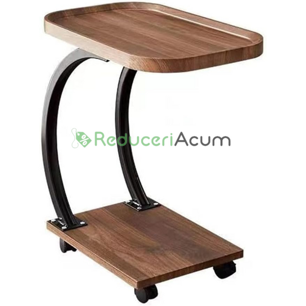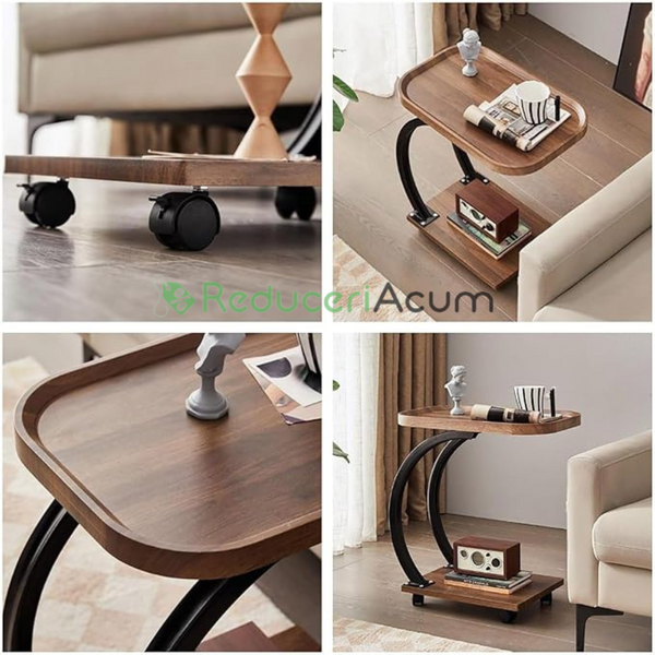 Măsuță Laterală Reglabilă pe Înălțime, cu 4 Roti, pentru Canapea, Dormitor, Sufragerie, Birou, Măsuță de Cafea pentru Spații Mici, Stabilă, Cadru Rezistent din Fier, Maro Rustic
