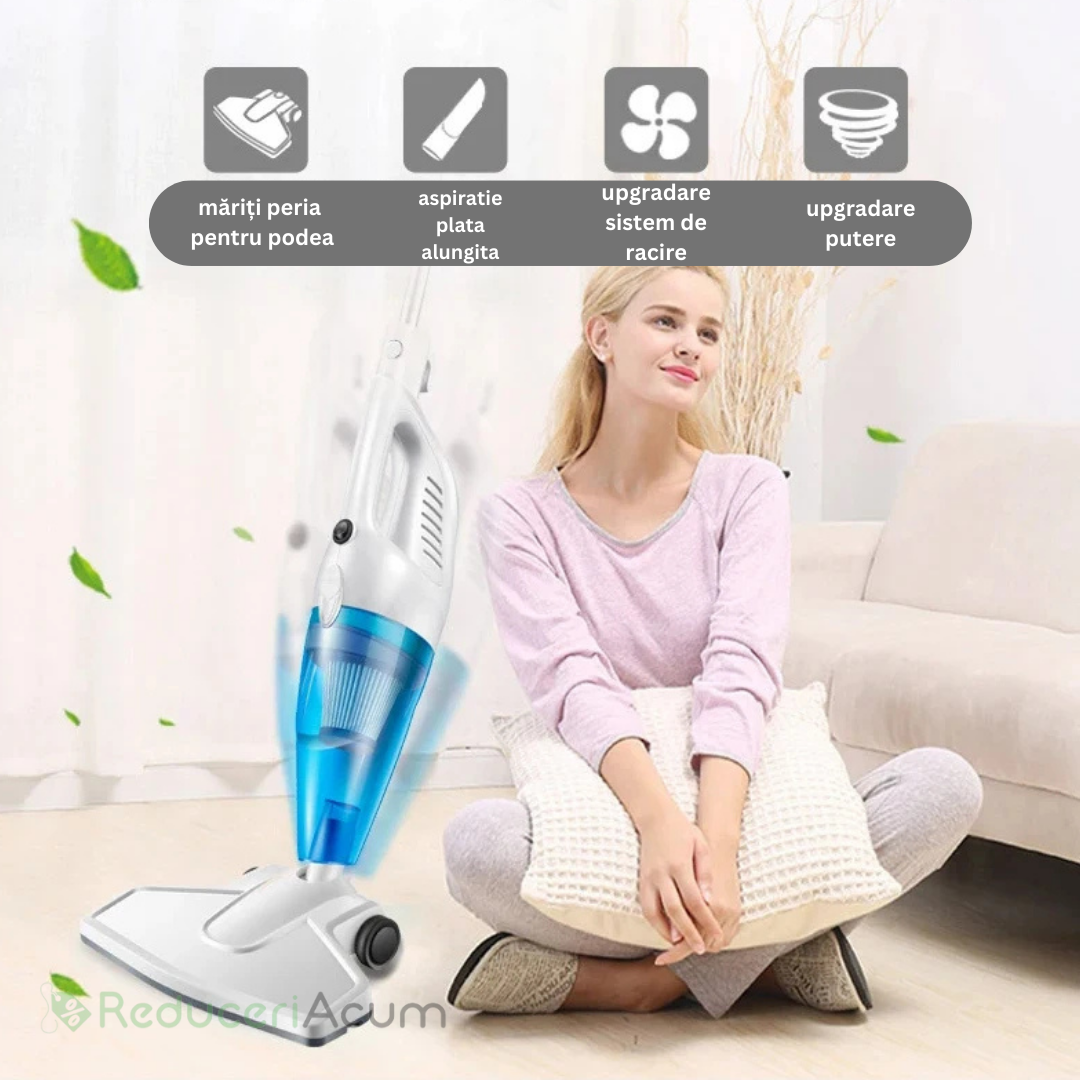Toate aceste elemente sunt îndeplinite de aspiratorul vertical 2 în 1 cu filtru, fără sac. Mai mult, te scutește de durerile de spate, deoarece nu trebuie să te apleci și se pliază perfect în mâna oricui! Dispune de un mâner metalic, detașabil care face mai facil procesul de aspirare.