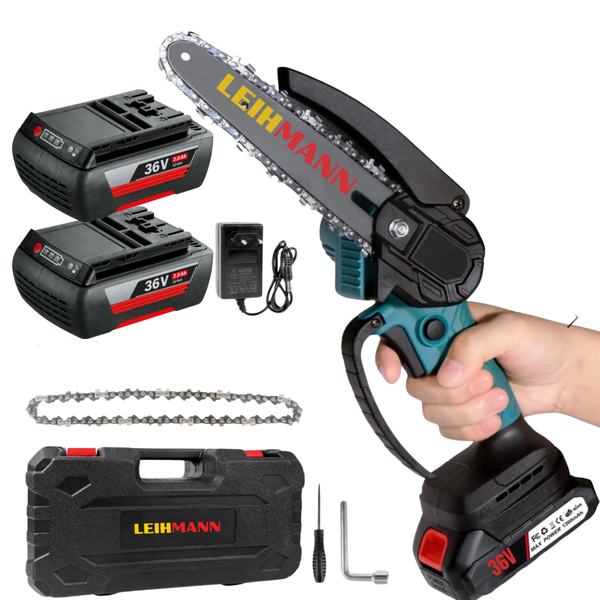 Drujba electrică LeiHmann cu lamă de 16 cm, 2 acumulatori de 36V și 2 lanțuri este un instrument de încredere, ideal pentru tăieri precise și lucrări de întreținere a grădinii sau curții tale.