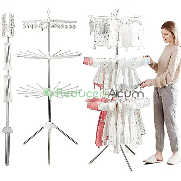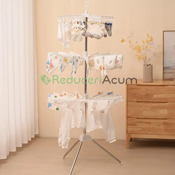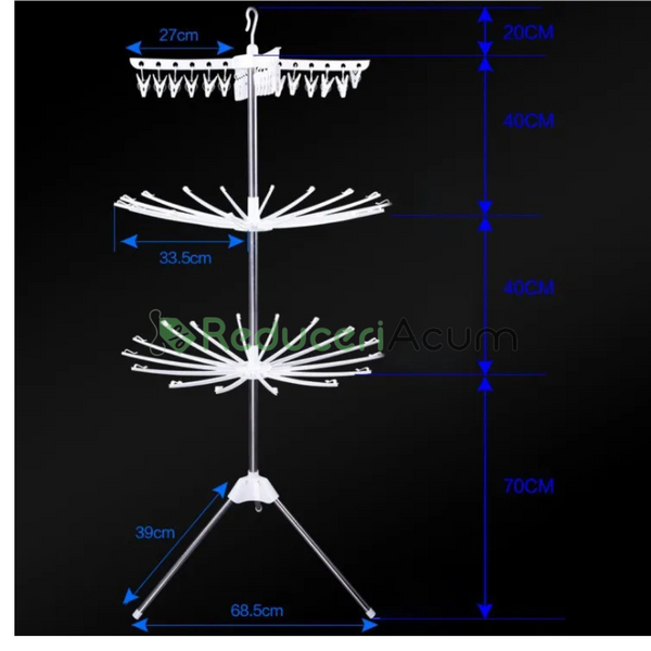 Uscator de rufe vertical si pliabil, inaltime 170 cm, 20 cleme, 50 capse, Gri
