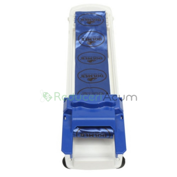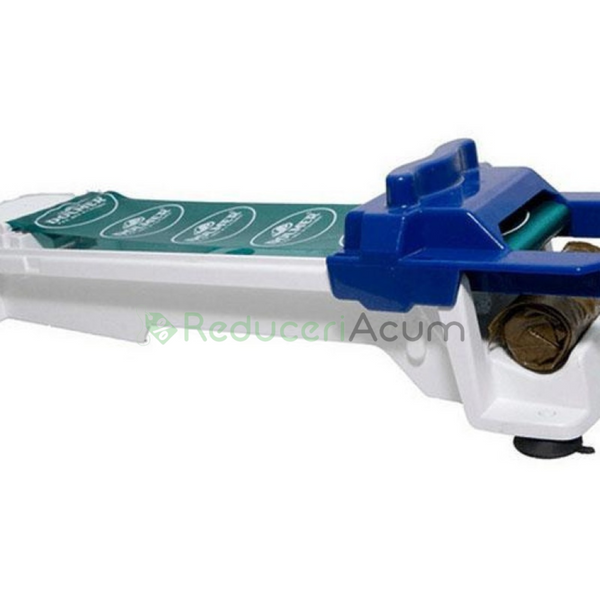 - Dispozitivul functioneaza pe baza unui principiu foarte simplu, fiind conceput sa preia o anumita cantitate de umplutura, pe care o rostogoleste usor si o inveleste cu folia dorita.