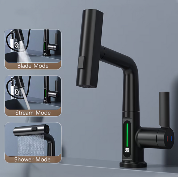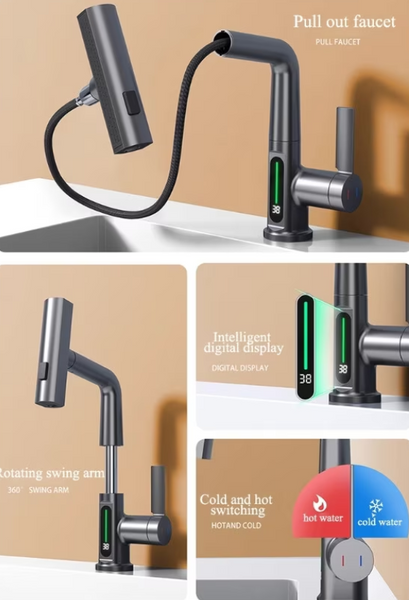 Bateria pentru chiuvetă cu extindere și afișaj digital este combinația perfectă între funcționalitate modernă și design elegant. Proiectată pentru confortul zilnic, această baterie oferă un furtun extensibil care permite o mobilitate excelentă, ideală pentru spălarea vaselor, fructelor sau curățarea chiuvetei cu ușurință.