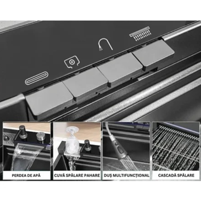 Chiuveta multifunctionala cu 2 cascade cu accesorii incluse, afisaj digital a temperaturii si robinet cascada