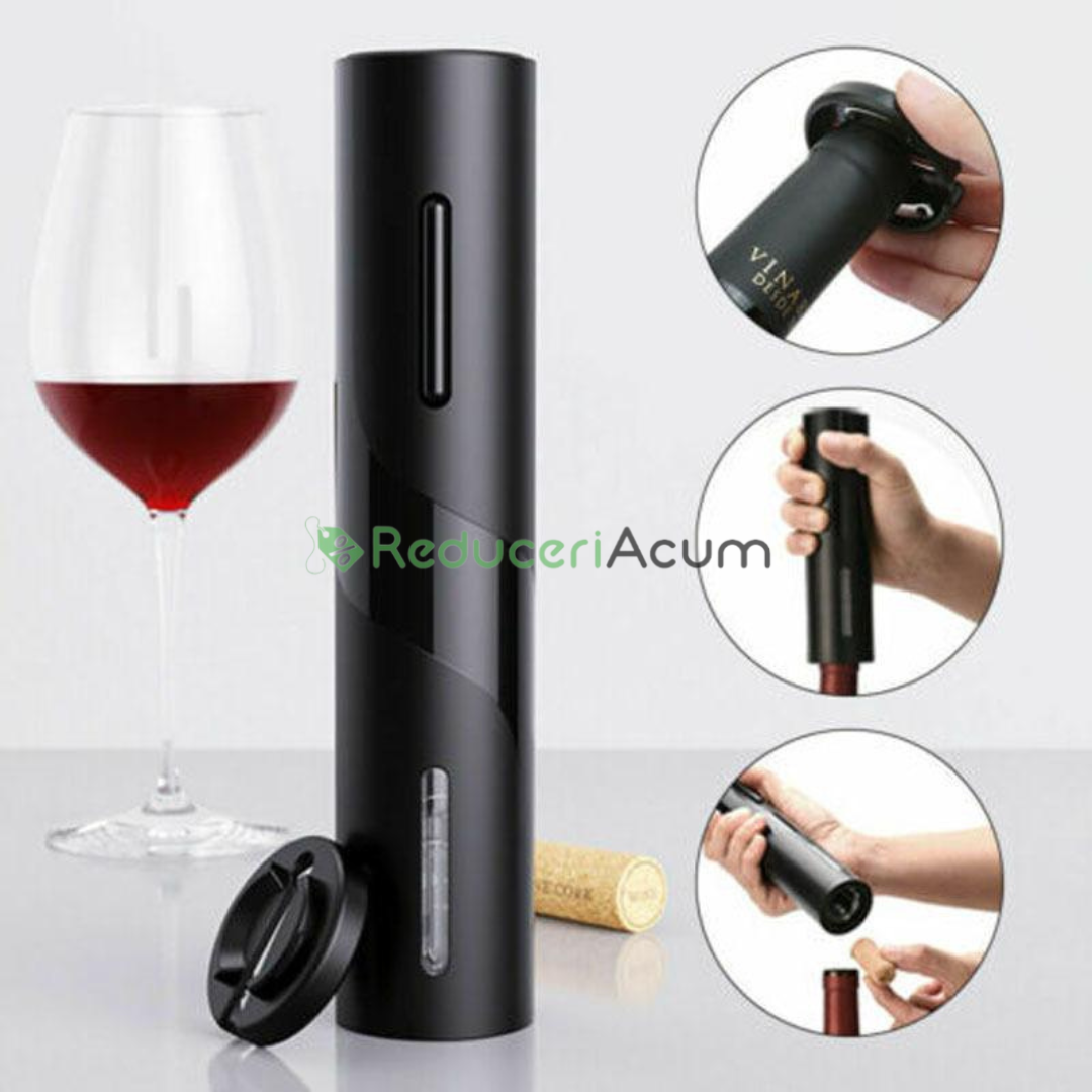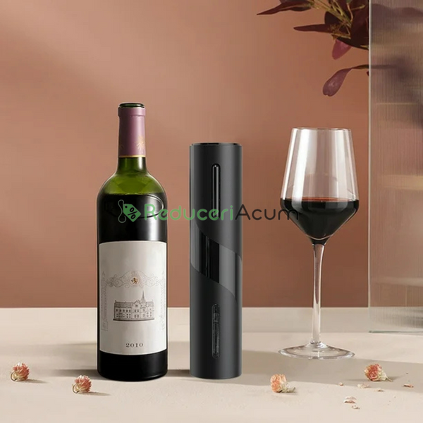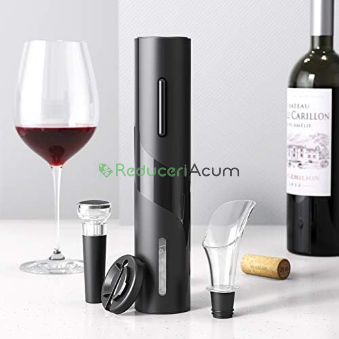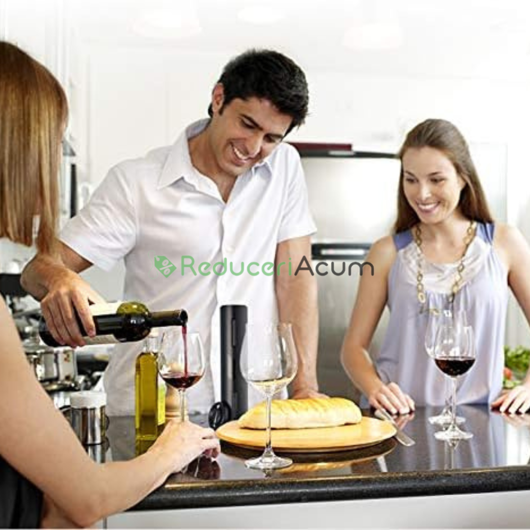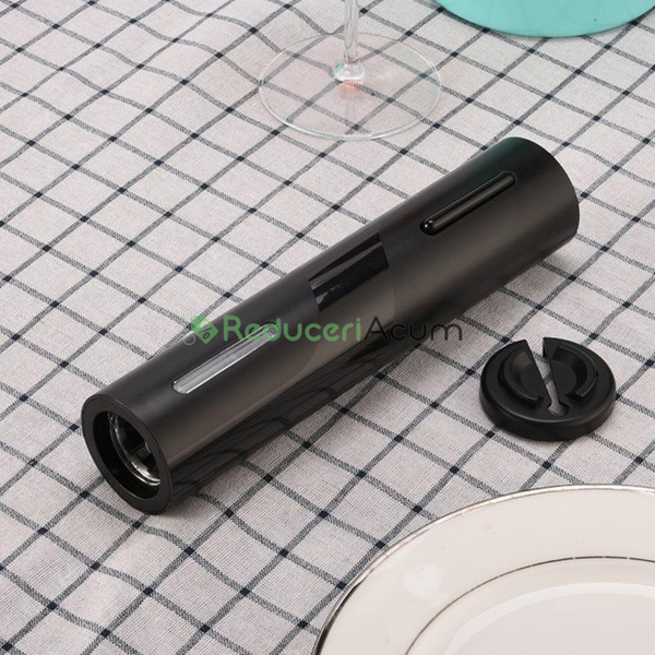Acest deschizător electric de sticle de vin este un accesoriu practic și stilat, creat pentru a face fiecare ocazie specială, simplificând deschiderea unei sticle de vin și oferind o experiență de servire rafinată.