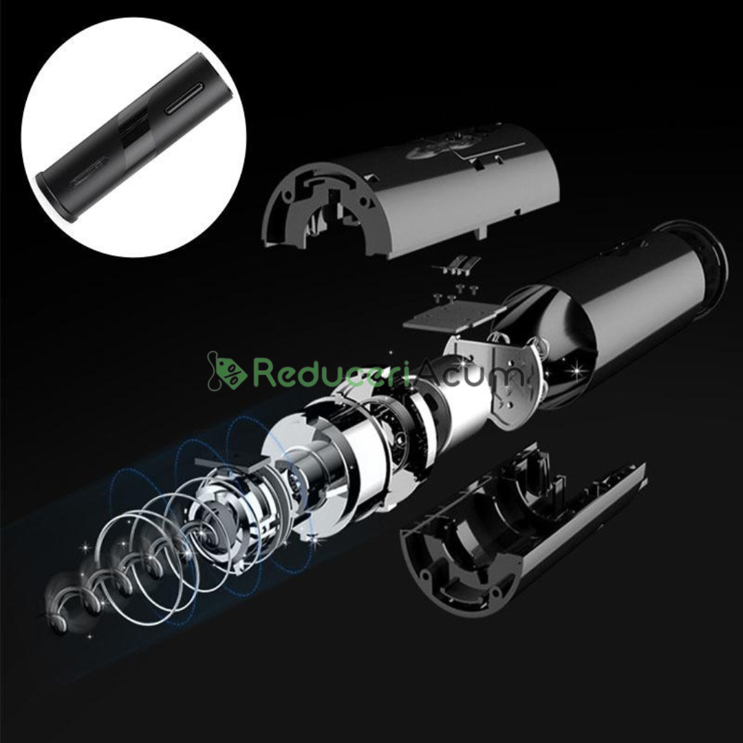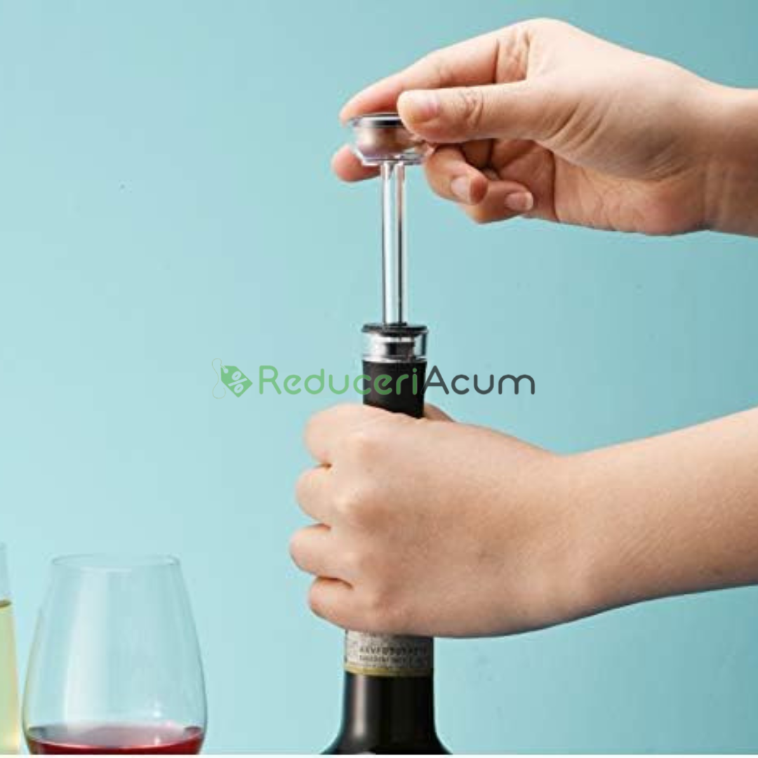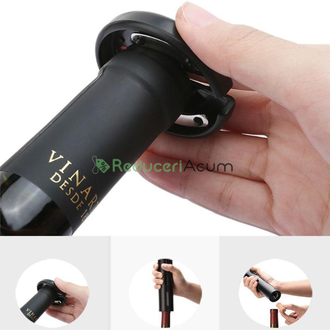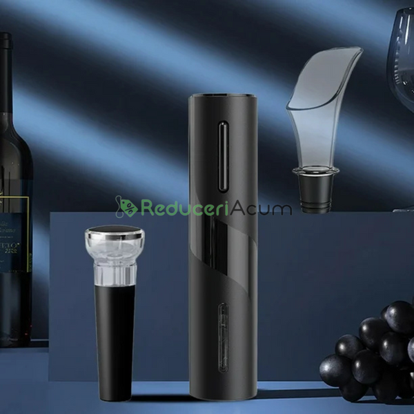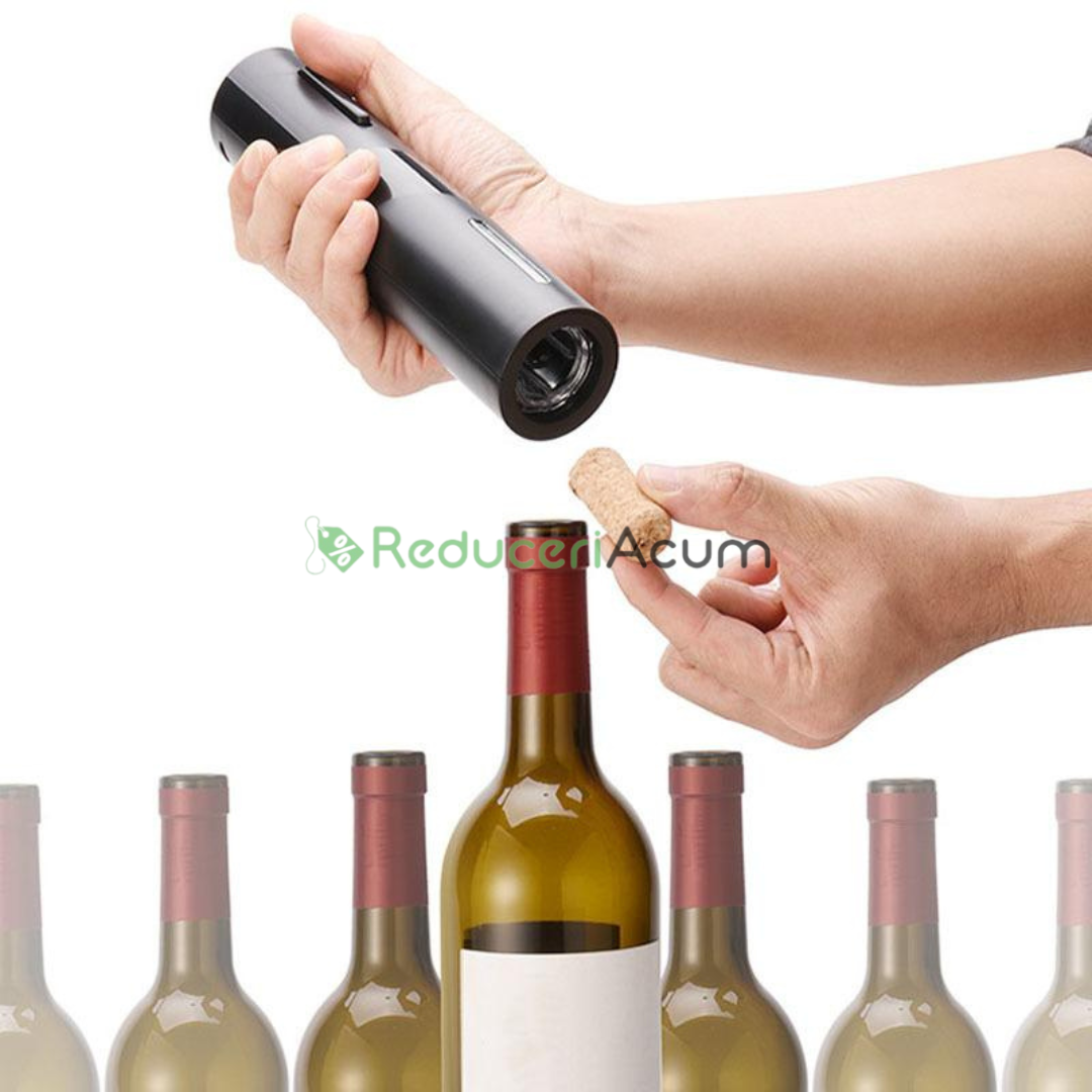 Acest deschizător electric de sticle de vin este un accesoriu practic și stilat, creat pentru a face fiecare ocazie specială, simplificând deschiderea unei sticle de vin și oferind o experiență de servire rafinată.