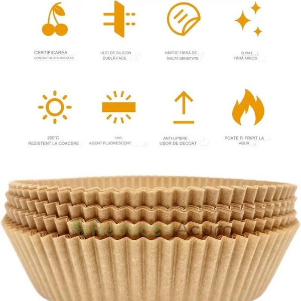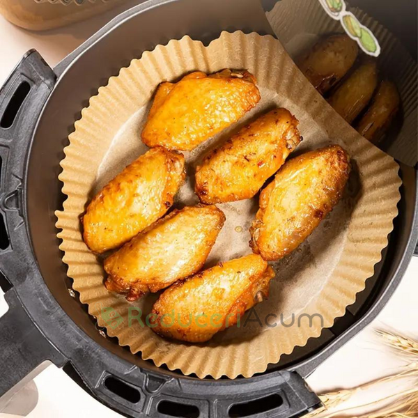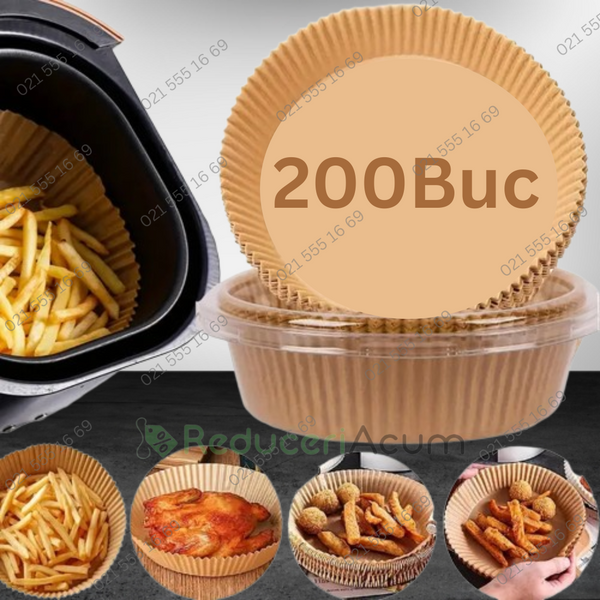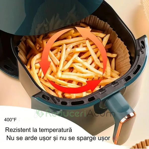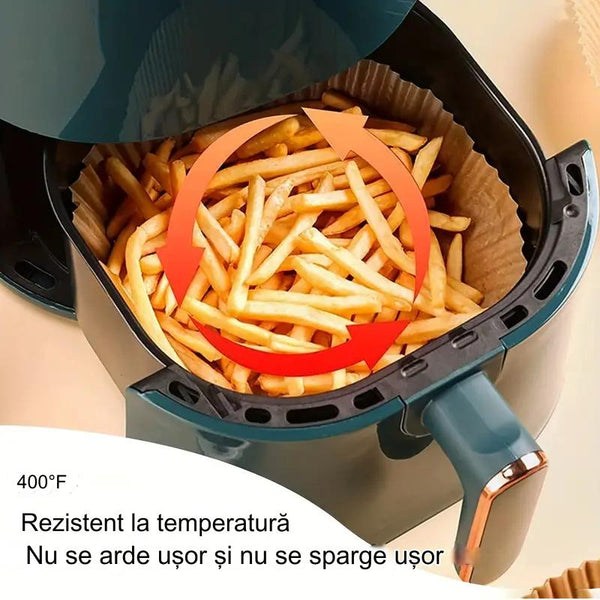 Pastrati friteuza curata: hartia de copt de unica folosinta pentru friteuza mentine friteuza la fel de curata ca inainte de utilizare si previne sa ramana resturile de alimente si petele de grasime pe vasele de gatit.