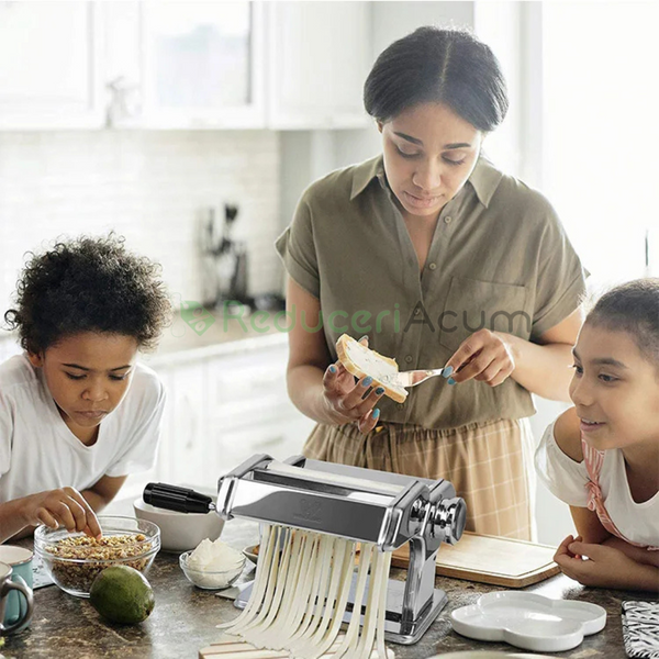 Masina de paste are 2 latimi de taiere - de la 0,5 mm la 3 mm, astfel incat puteti face atat bucati mici, cat si bucati mai mari de paste, in functie de preferintele dvs. Datorita accesoriului cu doua lame, veti obtine doua tipuri de paste: fire de 0,5 mm si fire de 3 mm. Niciodata nu a fost atat de usor sa faci paste!