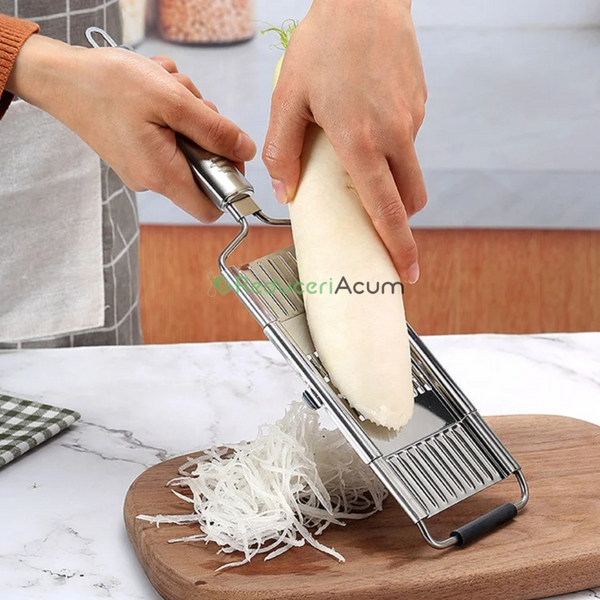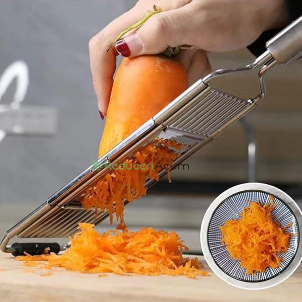 Fie ca este vorba de fructe, legume sau alt tip de mancare, cu aceasta razatoare veti toca totul frumos si uniform fara mari eforturi.