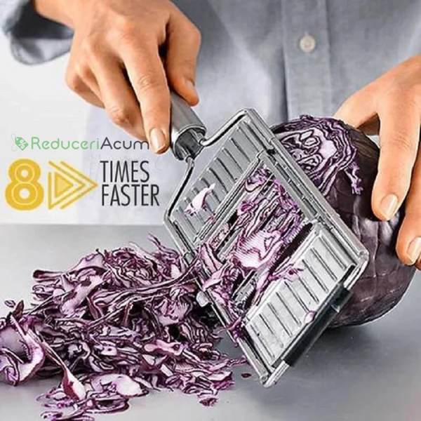 Designul perfect si simplu, cu lame extrem de puternice, face acest produs unic in lumea razatoarelor, cu care veti face mai usoara pregatirea alimentelor pentru salate sau alte preparate.