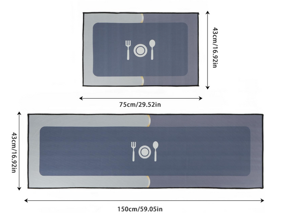 Acest set include două covorașe absorbante de culoare Bleumarin, în dimensiunile 150x43 cm și 75x43 cm, fabricate din microfibră de înaltă calitate, cu uscare rapidă. Sunt ideale pentru utilizare în baie, bucătărie sau hol, oferind confort, funcționalitate și un aspect modern. Textura moale este plăcută la atingere și oferă o senzație confortabilă sub picioare. Materialul extrem de absorbant reține eficient apa, prevenind formarea bălților și menținând podelele uscate și sigure.
