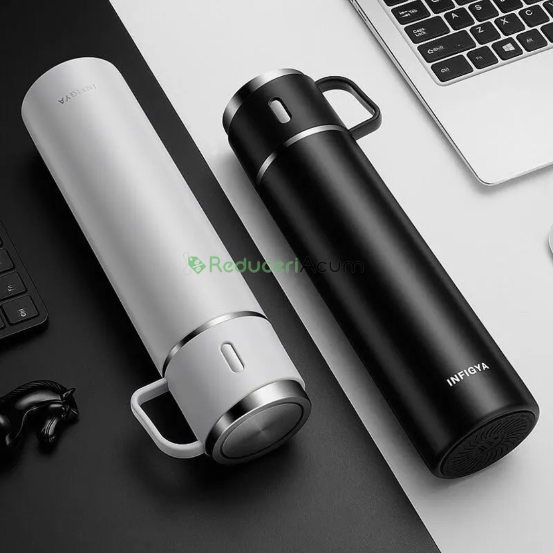 In plus, este echipat cu perete dublu si inchidere etans 100% este un cadou ideal pentru iubitorii de outdoor, drumetii, sau pentru cei care isi petrec mult timp in miscare si au nevoie de o bautura racoritoare sau calda la indemana.