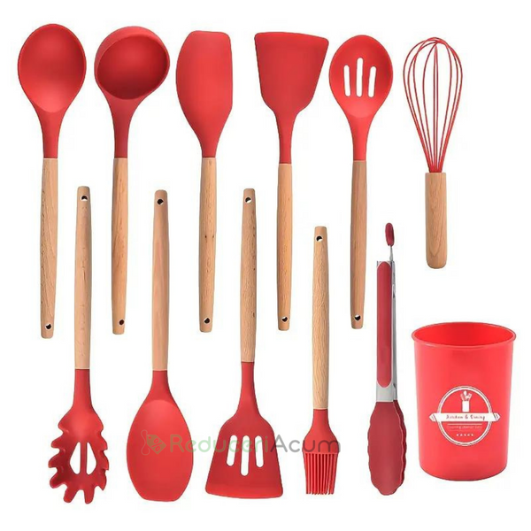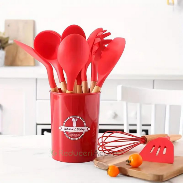 | Componente set | Polonic Lingura servire Lingura de gatit Lingura perforata Spatula Lingura paste Tel Cleste Paleta Suport ustensile Pensula Racleta aluat |