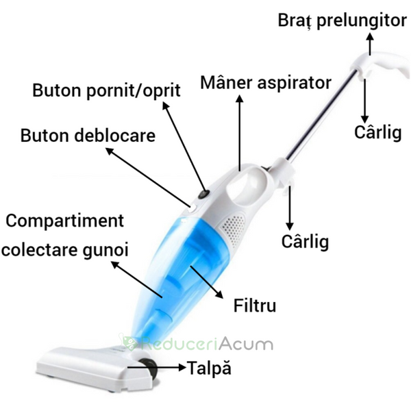 Toate aceste elemente sunt îndeplinite de aspiratorul vertical 2 în 1 cu filtru, fără sac. Mai mult, te scutește de durerile de spate, deoarece nu trebuie să te apleci și se pliază perfect în mâna oricui! Dispune de un mâner metalic, detașabil care face mai facil procesul de aspirare.