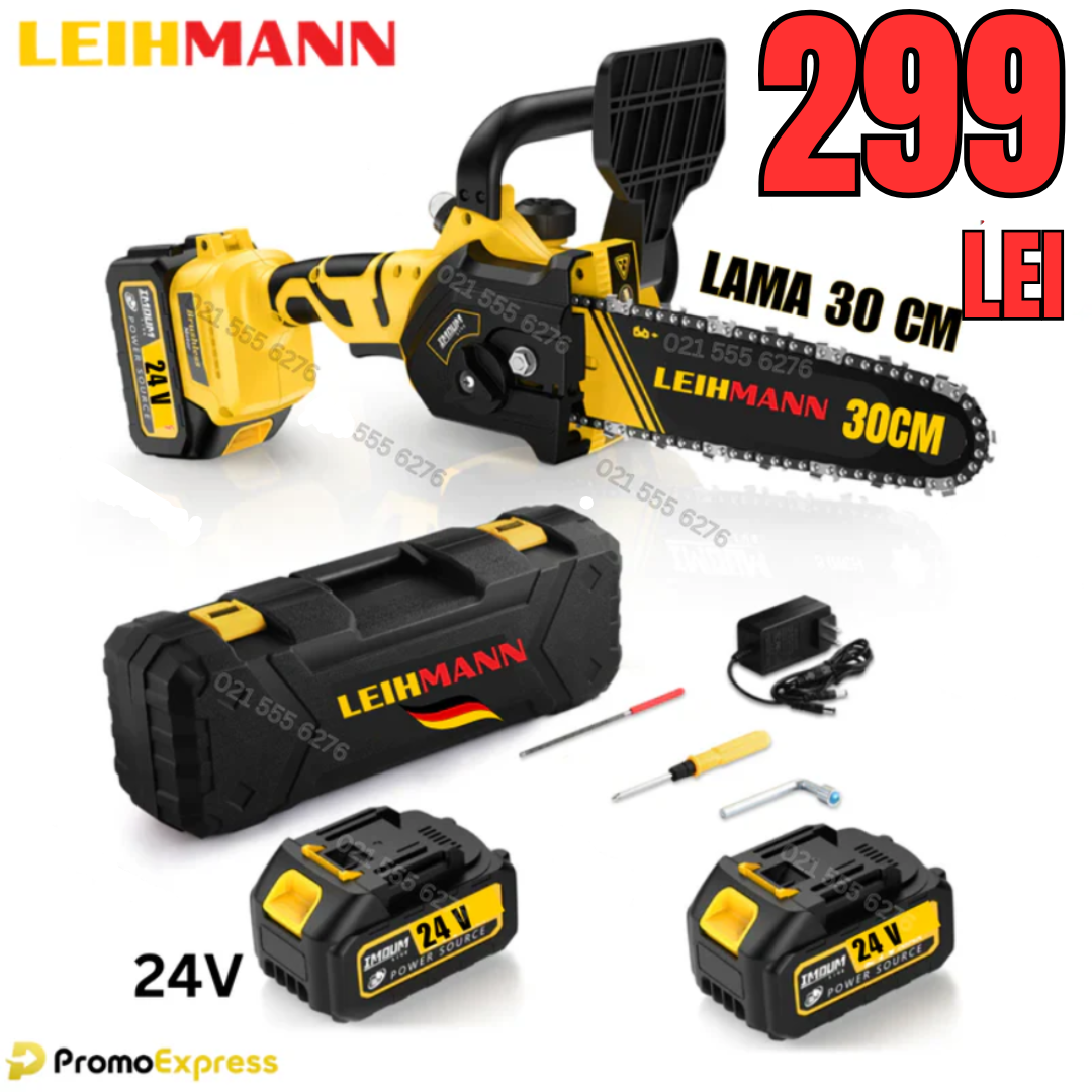 ⚙️ Fierăstraul electric LEIHMANN este echipat cu un motor puternic și eficient, prevăzut cu doi acumulatori de 24V și 5Ah și un încărcător rapid. Acest lucru permite utilizarea sa fără cablu, oferind libertate de mișcare și ușurință în utilizare. Designul ergonomic al fierăstrăului, cu mâner anti-alunecare, oferă o prindere confortabilă și sigură în timpul lucrului.