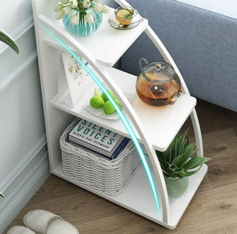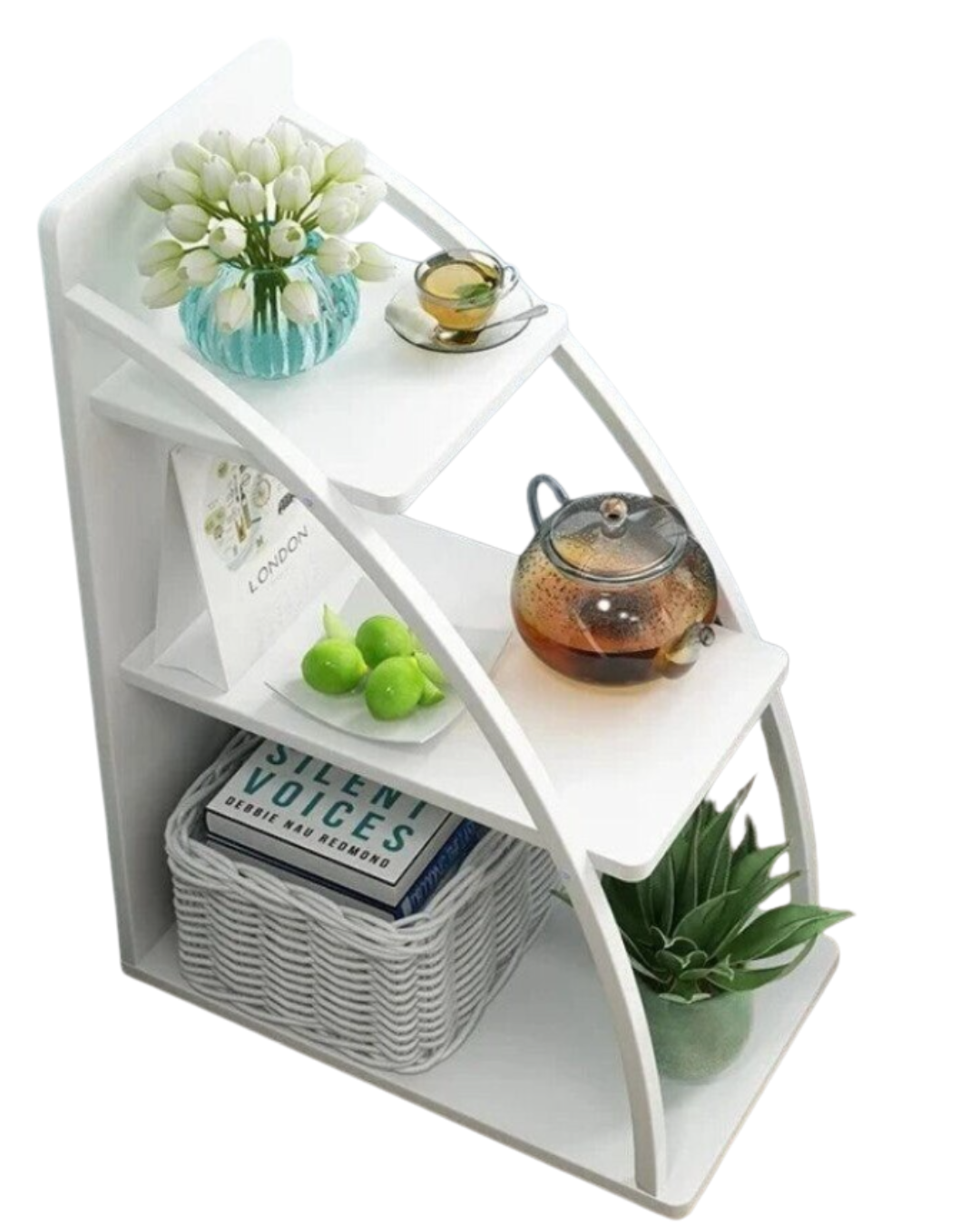 Fabricată din lemn durabil și finisată într-o nuanță albă, etajera este stabilă, rezistentă și ușor de întreținut. Este ideală pentru a expune decorațiuni, cărți, plante, parfumuri, accesorii sau produse de uz zilnic.