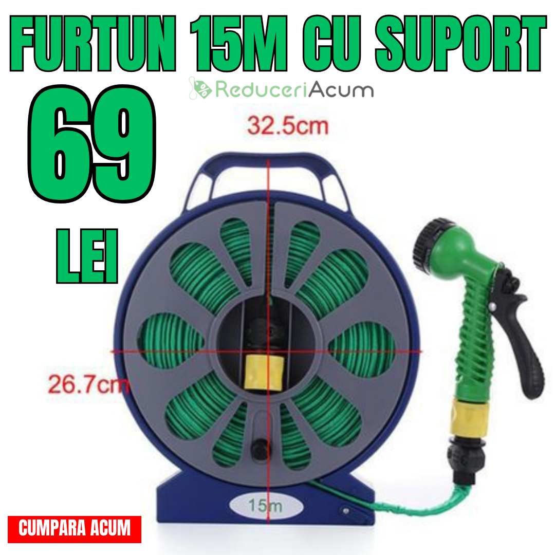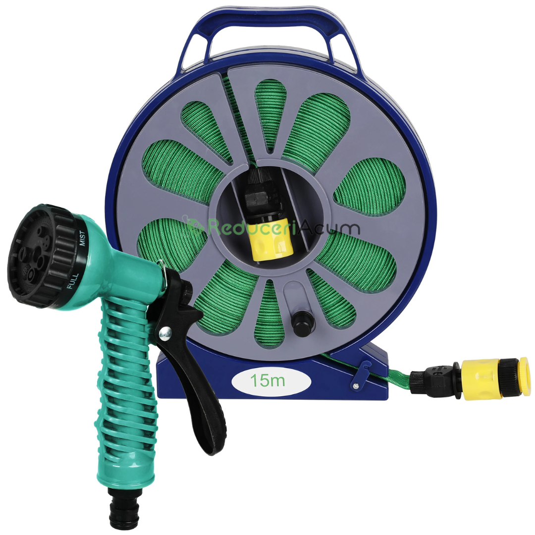 ???? Furtun de 15 Metri cu Suport - Soluția Completă pentru O Grădină Impecabilă! ????