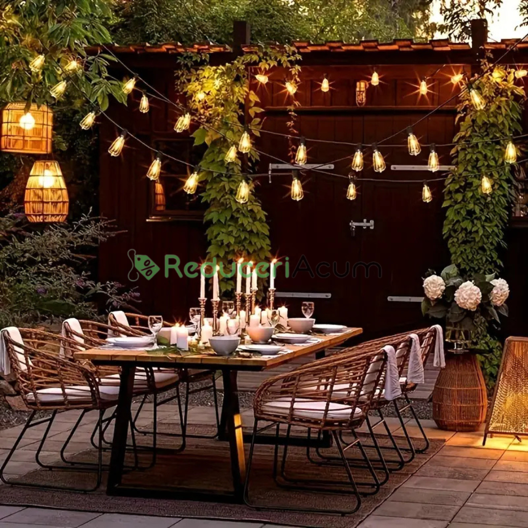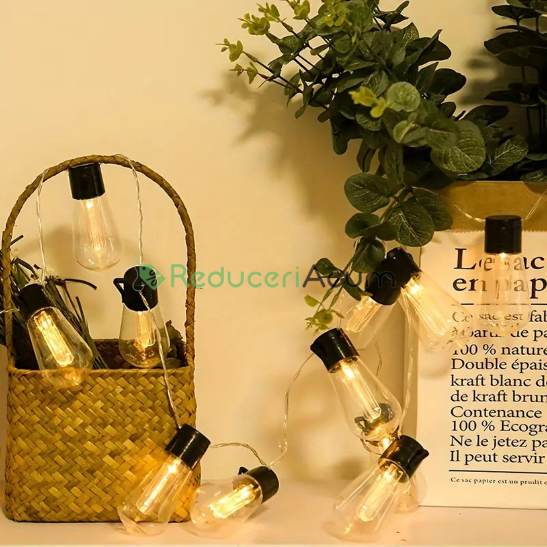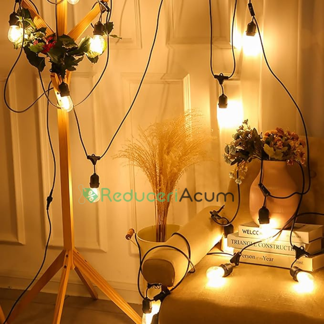 De obicei, aceasta include o serie de becuri mici, eficiente energetic, adesea LED, aranjate într-o linie dreaptă sau ușor curbată. Aceste ghirlande sunt ideale atât pentru utilizare în interior, cât și în exterior, fiind perfecte pentru iluminarea spațiilor precum balcoanele, grădinile, terasele sau locațiile de evenimente. Designul liniar asigură o distribuție uniformă a luminii, adăugând o atmosferă caldă și plăcută
