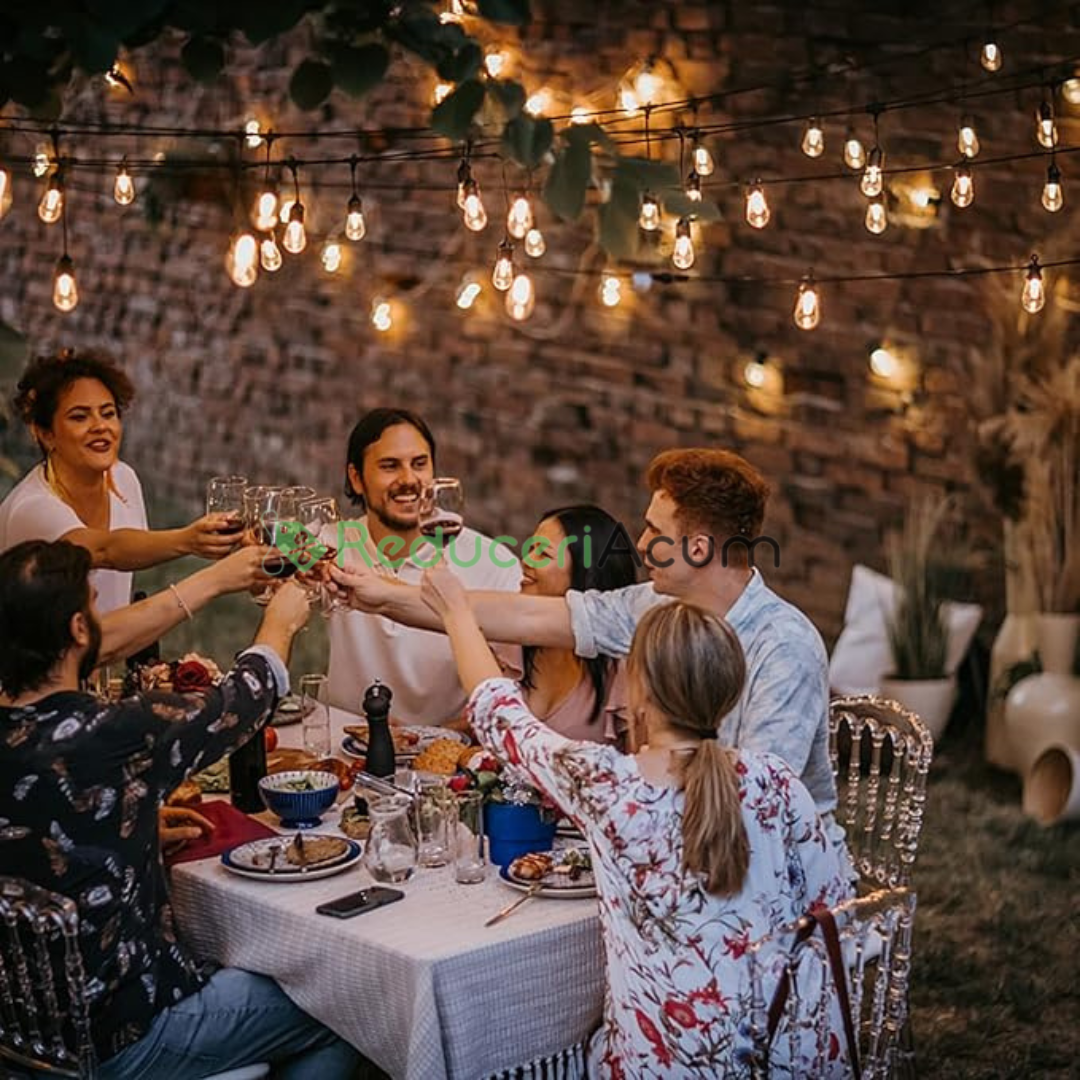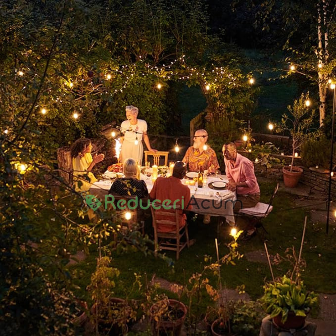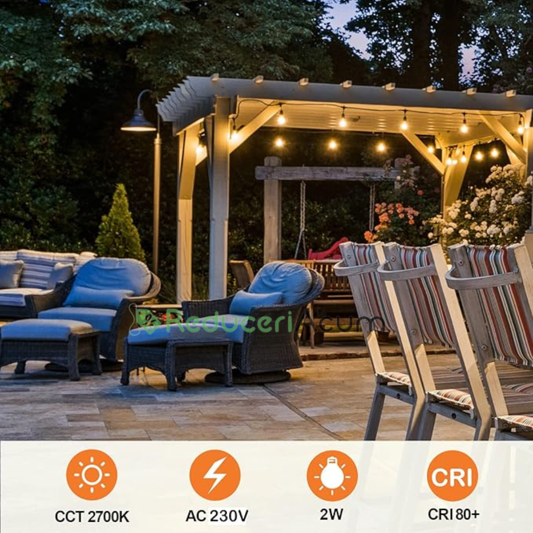 De obicei, aceasta include o serie de becuri mici, eficiente energetic, adesea LED, aranjate într-o linie dreaptă sau ușor curbată. Aceste ghirlande sunt ideale atât pentru utilizare în interior, cât și în exterior, fiind perfecte pentru iluminarea spațiilor precum balcoanele, grădinile, terasele sau locațiile de evenimente. Designul liniar asigură o distribuție uniformă a luminii, adăugând o atmosferă caldă și plăcută
