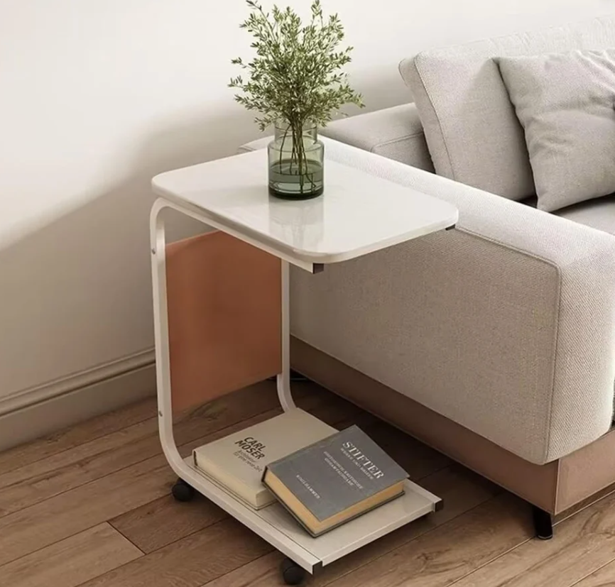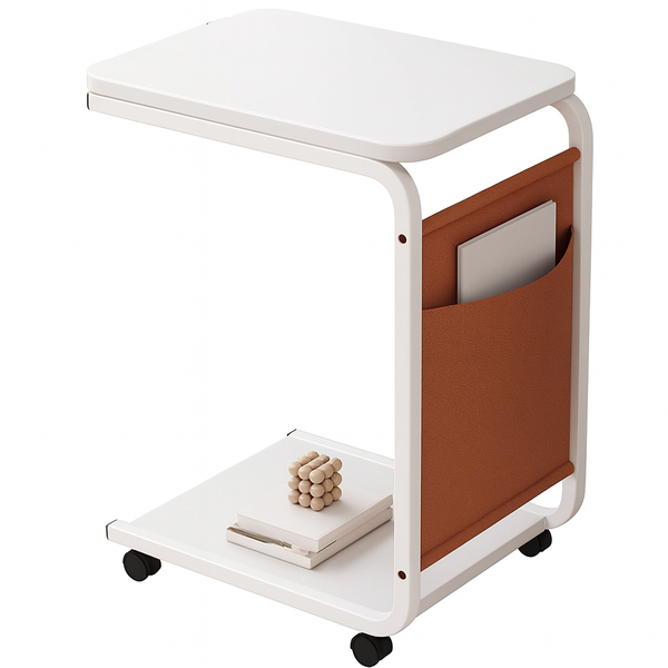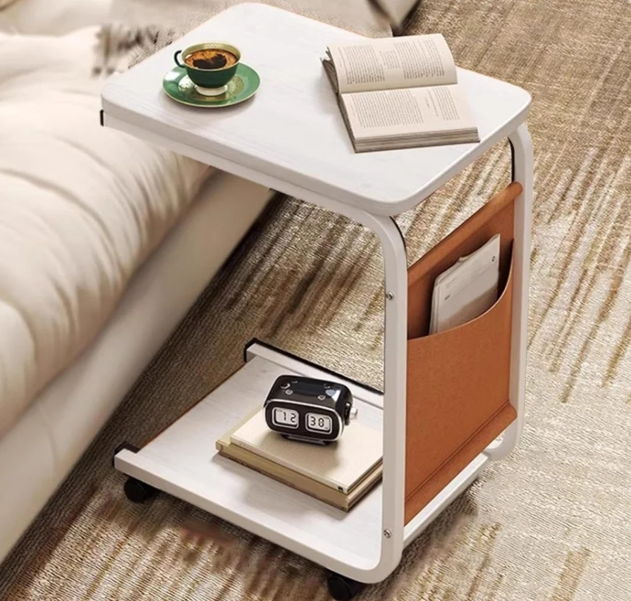 Masa de cafea, cu 2 polite si buzunar lateral alba