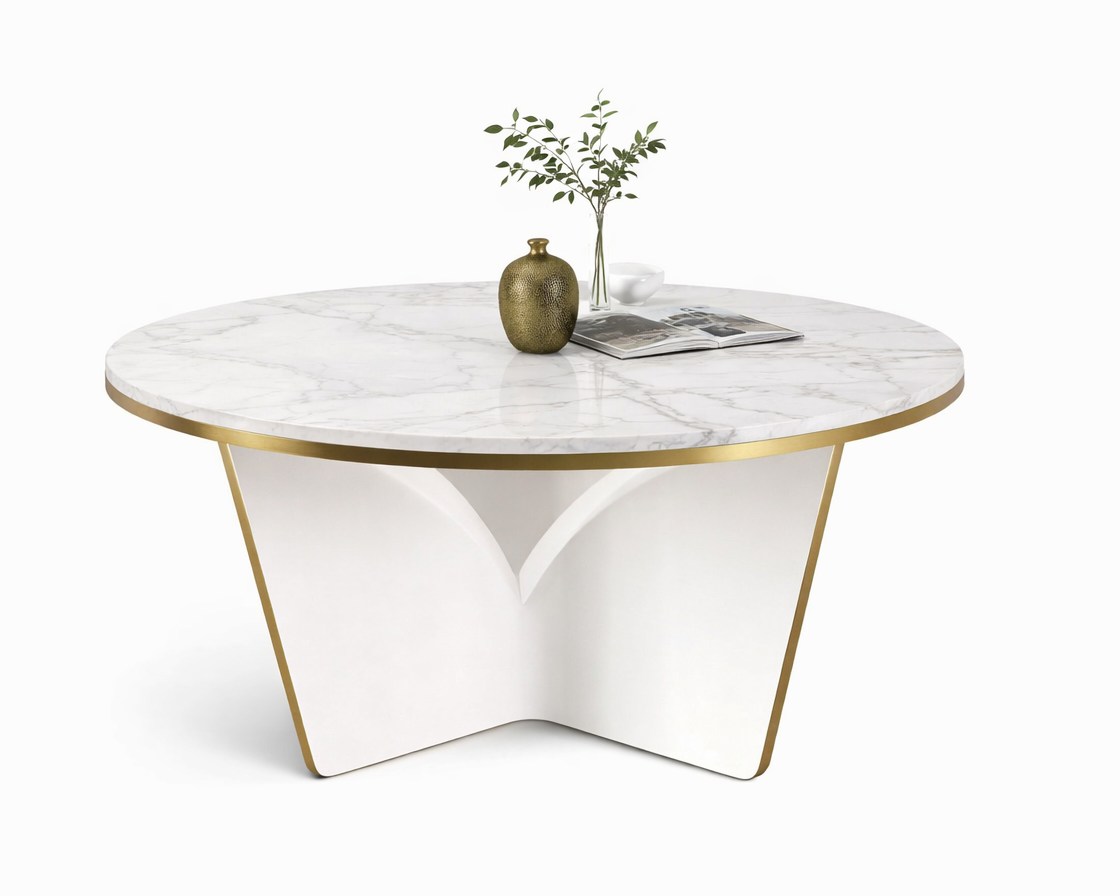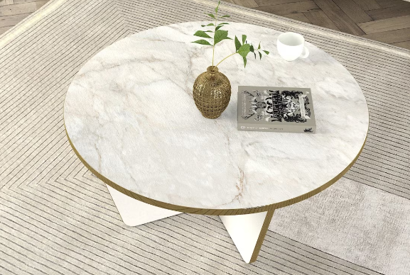 Caracteristici: Suprafața rotundă generoasă din marmură artificială adaugă un accent luxos și facilitează conversații intime în jurul ei.