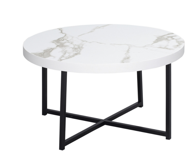 Blatul mesei este realizat din MDF de înaltă calitate, un material durabil și ușor de întreținut, iar baza din metal asigură stabilitate și durabilitate pe termen lung. Forma rotundă a mesei permite un flux mai bun în încăpere, fiind ușor de integrat în orice colț sau centru al camerei.