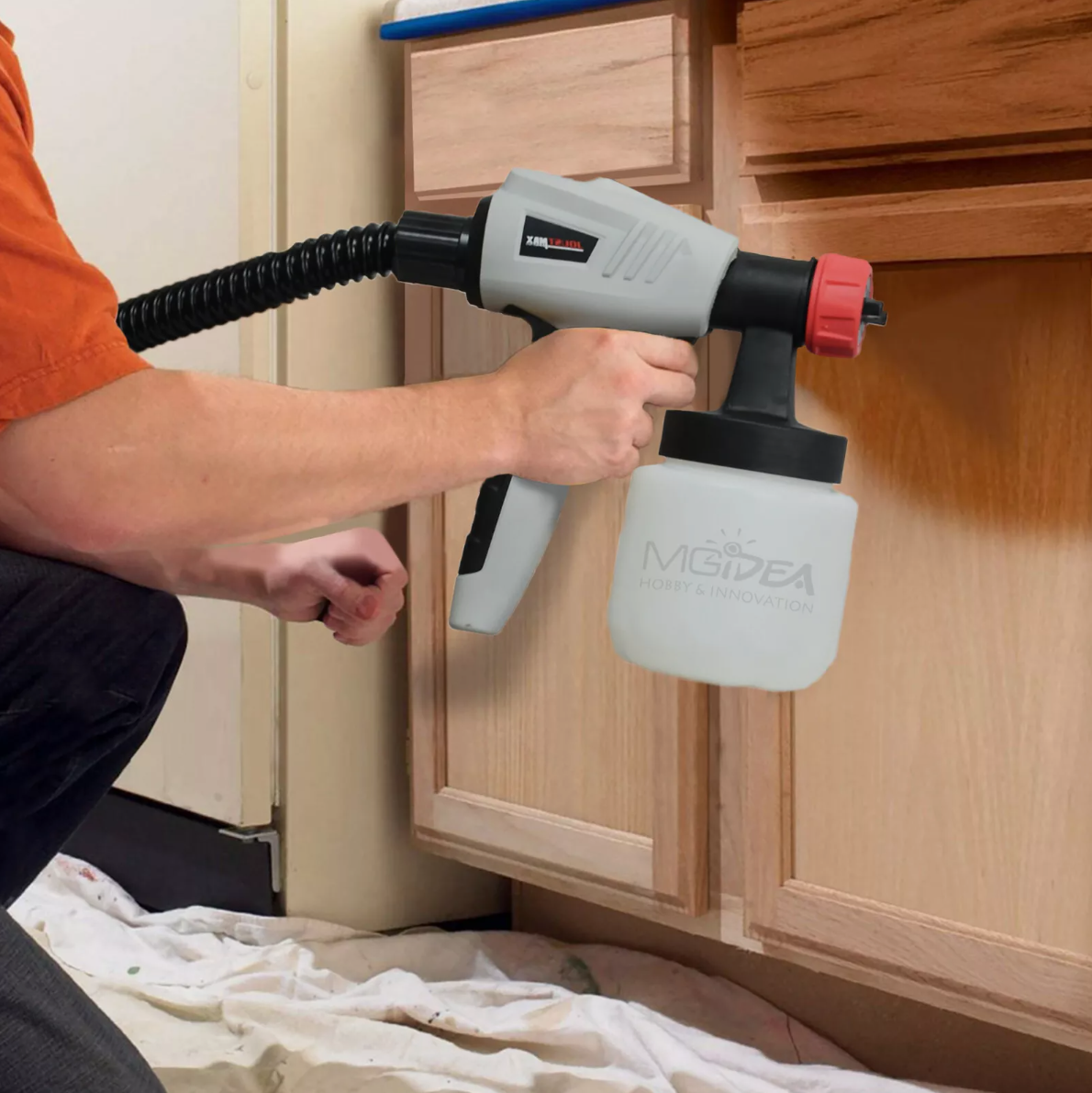 Recipientul generos de 800 ml asigură o autonomie bună, în timp ce cele două duze reglabile oferă flexibilitate pentru diferite tipuri de lucrări. Este ușor de utilizat, compatibil cu diverse tipuri de vopsea și perfect pentru proiecte DIY sau utilizare profesională.