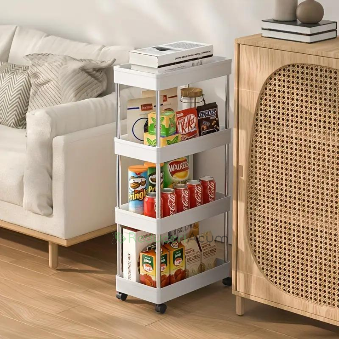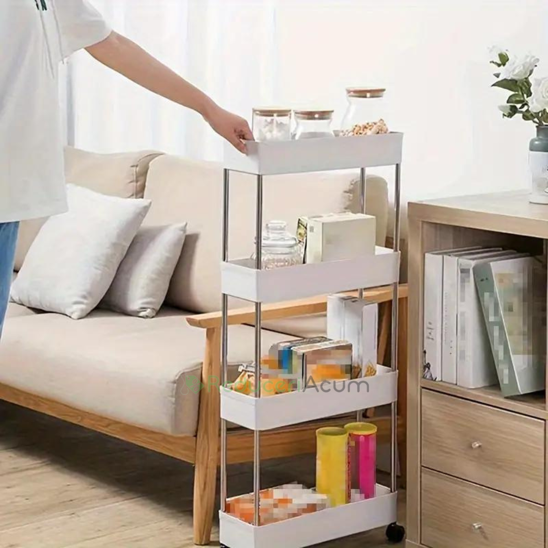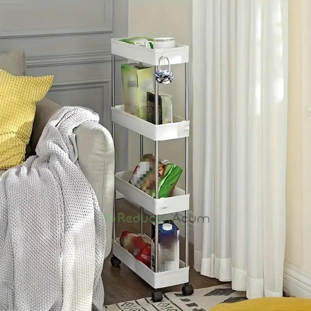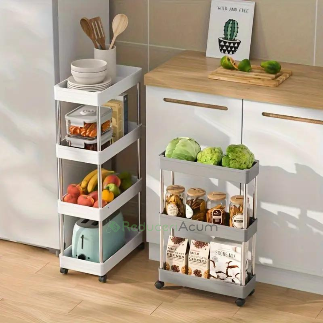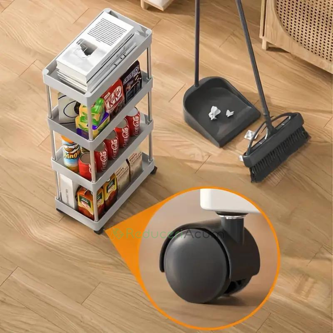 Suportul de depozitare cu 4 rafturi și roti pentru baie sau bucătărie este soluția perfectă pentru organizarea spațiului tău, oferindu-ți beneficii remarcabile:
