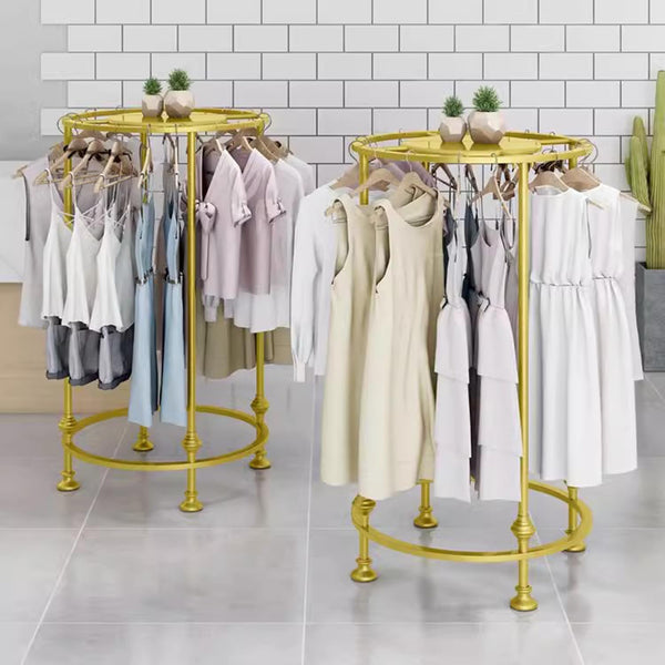 Suportul cilindric pentru haine, auriu, este o piesa eleganta si functionala, ideala pentru organizarea si expunerea hainelor in dormitoare, dressinguri, magazine sau showroomuri. Designul sau modern, cu finisaj auriu lucios, adauga un plus de rafinament oricarui spatiu, transformand un obiect practic intr-un element decorativ de impact. Forma cilindrica ofera stabilitate sporita si permite asezarea uniforma a umeraselor, mentinand hainele ordonate si usor accesibile.