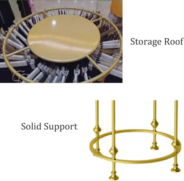 Dimensiunile sale permit amplasarea atat in spatii restranse, cat si in incaperi mai generoase, fara a incarca vizual ambientul. Suportul cilindric pentru haine este ideal atat pentru uz casnic, cat si pentru spatii comerciale unde prezentarea produselor este esentiala. Prin combinatia dintre utilitate, durabilitate si design premium, acest suport auriu reprezinta o solutie practica si stilata pentru organizarea hainelor.