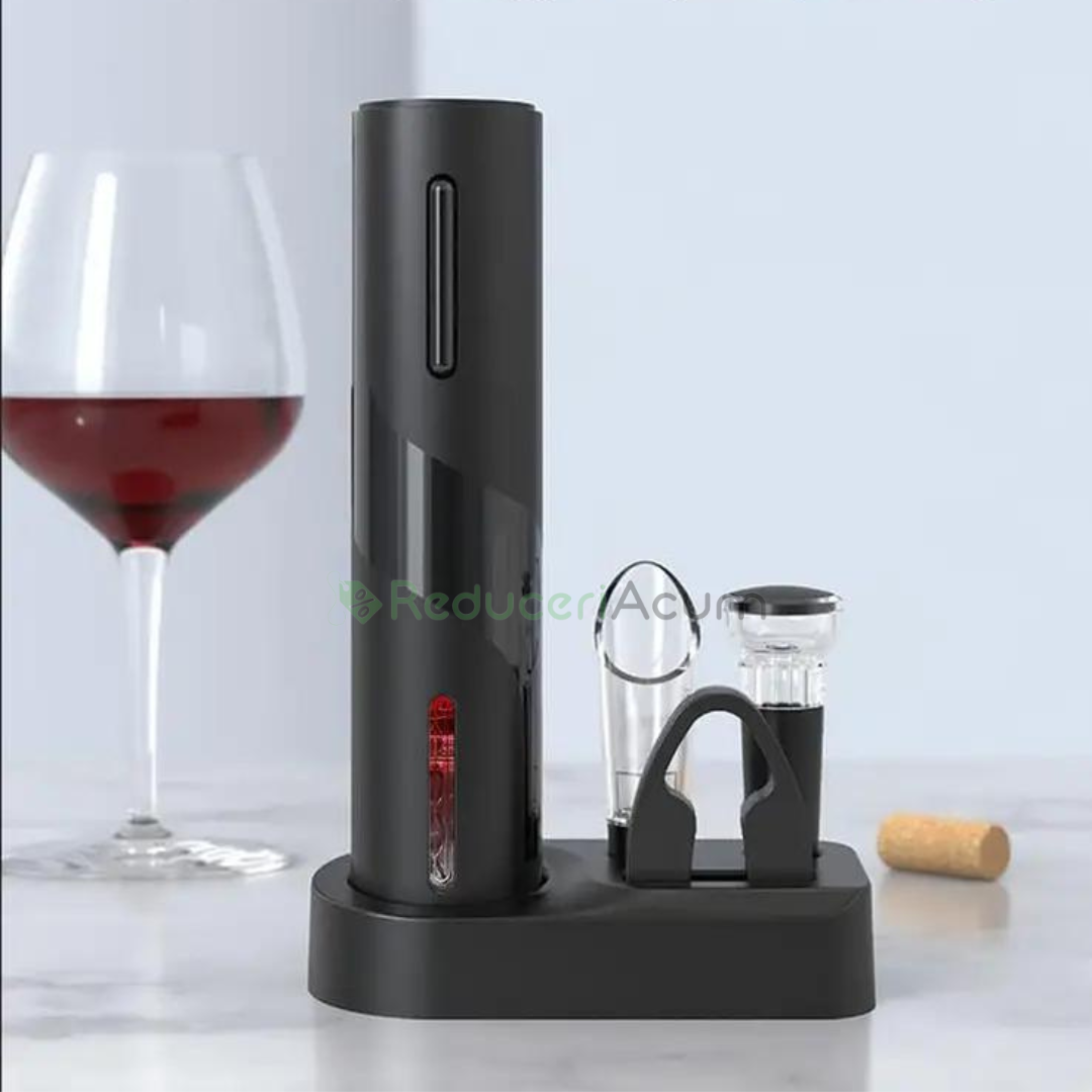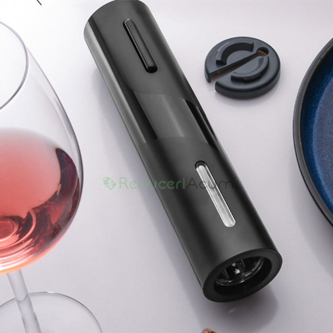Orice bautor de vin, sau somelier trebuie sa aiba in casa un tirbuson. Dar ce ati zice daca in locul celui clasic, care cateodata iti pune si forta fizica la incercare, ati achizitiona unul electric si cu un accesoriu, care sa taie dopul de sticla?
