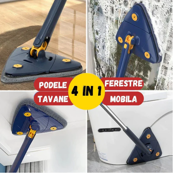 Un mop cu cap triunghiular, reglabil, cu rotire 360 grade este un instrument de curățare practic și eficient pentru casa dvs. Acest mop este ideal pentru a curăța podelele din orice colț al casei, datorită capului triunghiular care se potrivește perfect în colțuri și spații înguste. În plus, capul mop-ului este reglabil, ceea ce vă permite să ajustați lungimea mânerului în funcție de înălțimea dvs. Acest lucru face ca mopul să fie confortabil de utilizat și previne durerile de spate sau de genunchi. Rotirea de 360 de grade a capului mop-ului face ca acesta să fie ușor de manevrat și să ajungă în orice colț al camerei. Mopul cu cap triunghiular, reglabil, cu rotire 360 grade este un instrument de curățare practic și eficient pentru casa dvs., care vă va ajuta să economisiți timp și energie la curățarea podelelor.