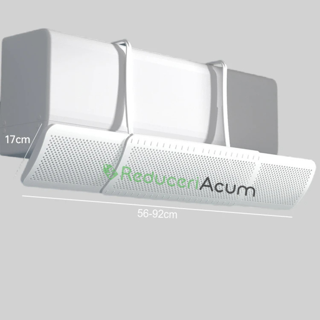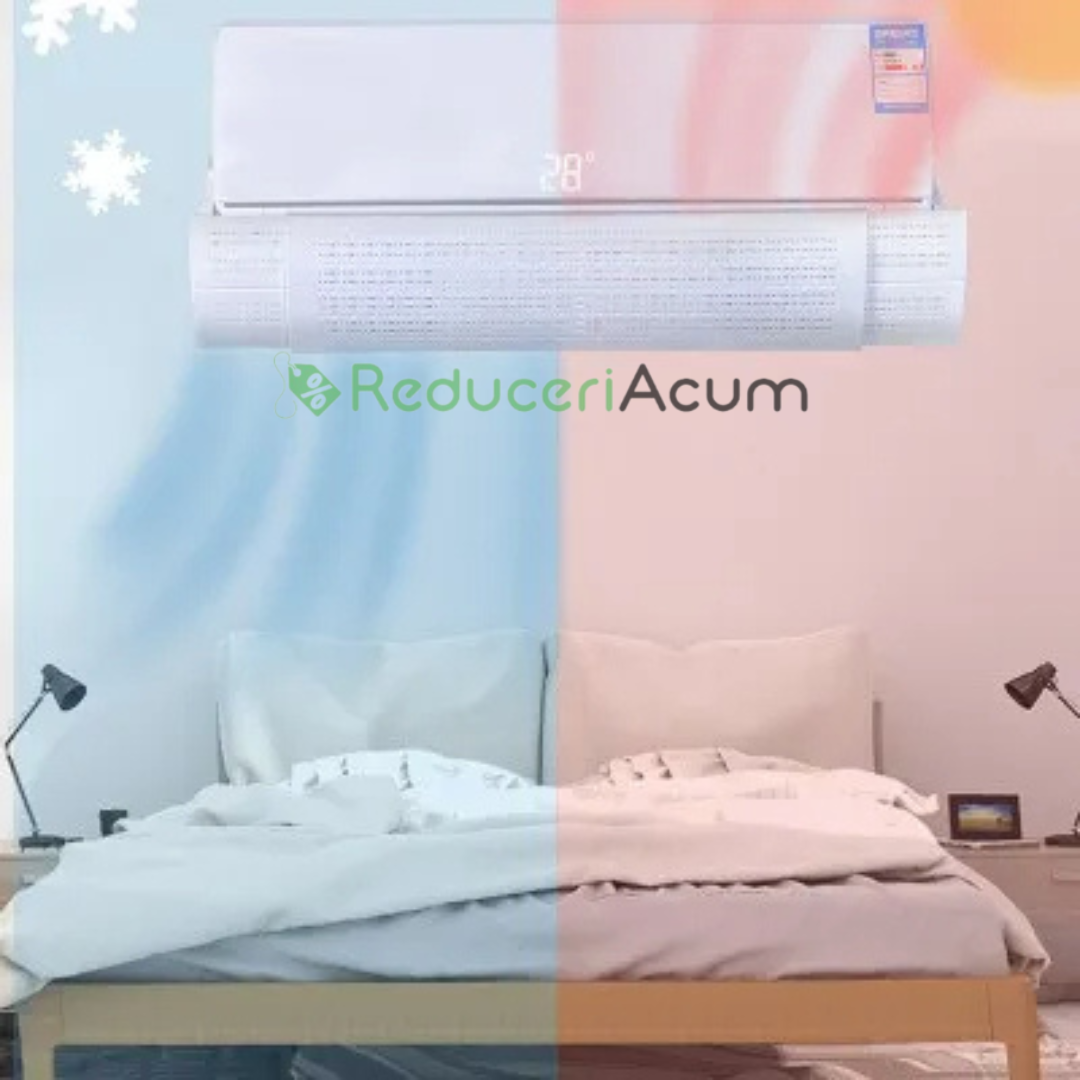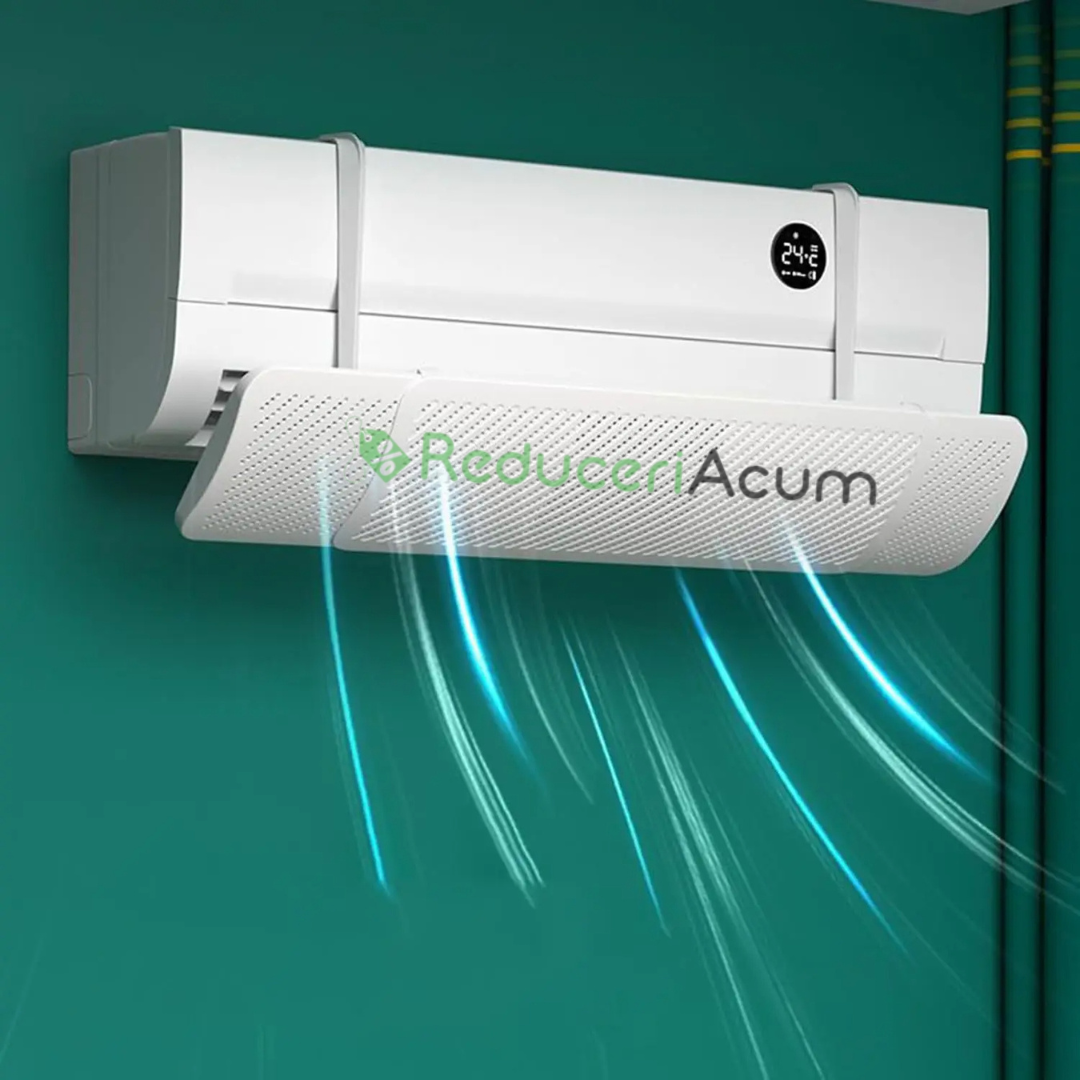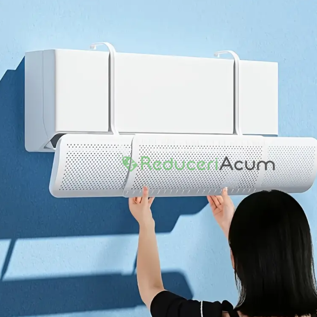 Produsul este un deflector de aer pentru aer condiționat, care se montează în fața unității interioare. Este compatibil cu majoritatea aparatelor de aer condiționat și se fixează fără a necesita unelte suplimentare. Instalarea implică atașarea deflectorului la grila de evacuare a aerului prin intermediul unor cleme sau benzi adezive incluse. Pentru compatibilitatea specifică, este recomandat să verificați dimensiunile unității dvs. de aer condiționat.