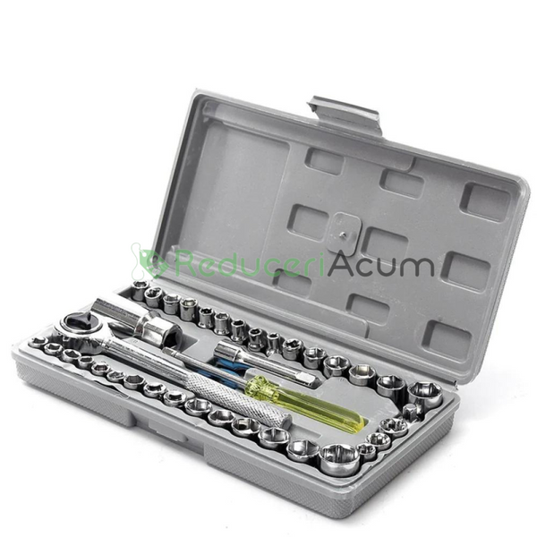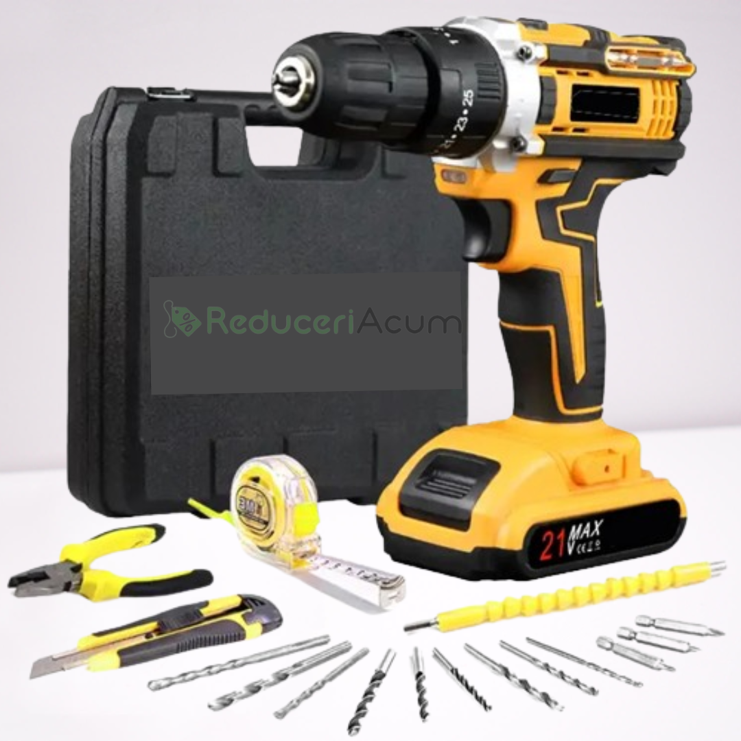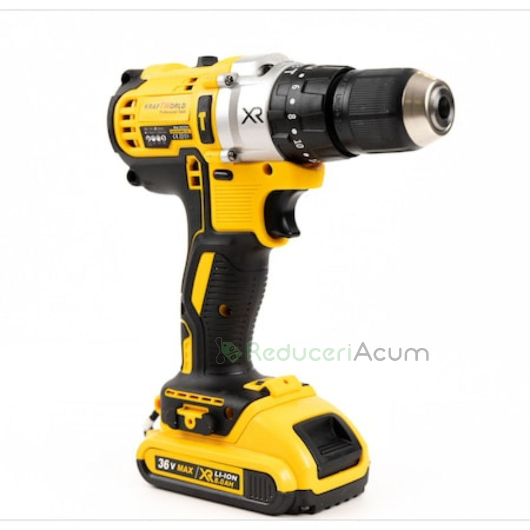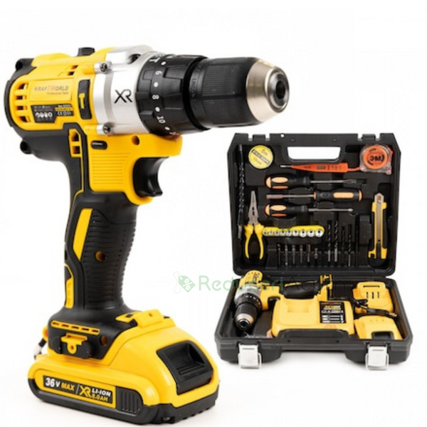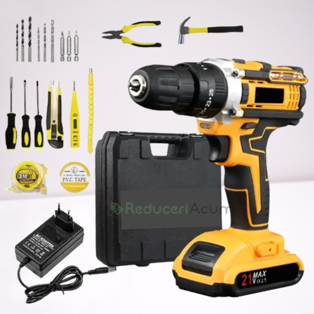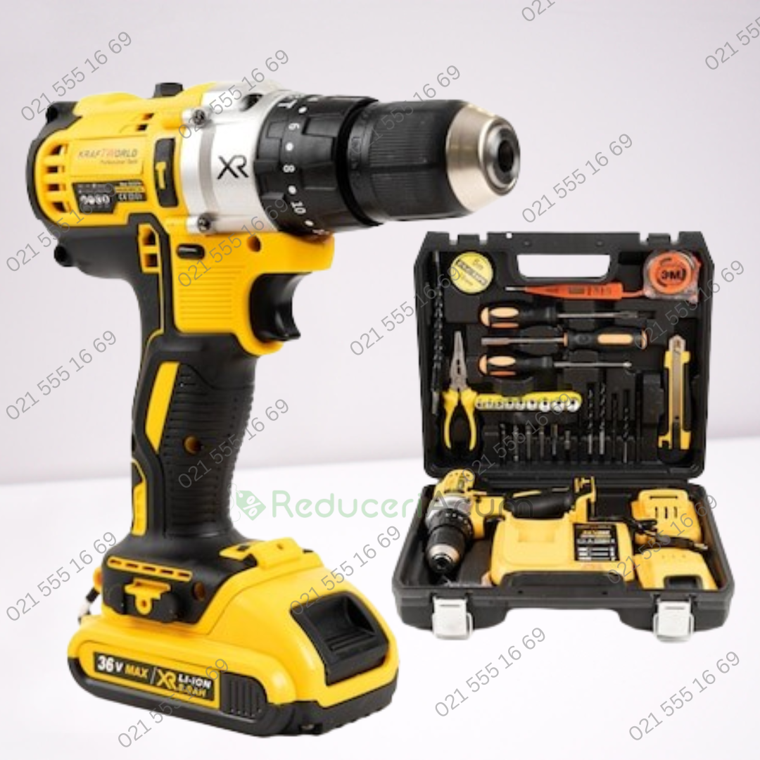 Trusa bormasina LEIH MANN, 2 acumulatori, 36V, 5Ah, incarcator si 30 accesorii, galben + Trusa 40 Piese Cadou