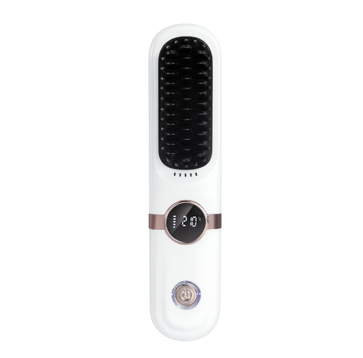 Această perie electrică de îndreptat părul este creată pentru a oferi o coafare rapidă, eficientă și delicată, fiind ideală pentru utilizarea zilnică acasă sau în călătorii. Designul său modern, în nuanțe de alb și accente metalice, îi conferă un aspect elegant, în timp ce afișajul digital integrat permite monitorizarea precisă a temperaturii. Perii încălziți sunt concepuți pentru a îndrepta părul într-o singură mișcare, reducând timpul necesar coafării și oferind un finisaj neted și uniform.