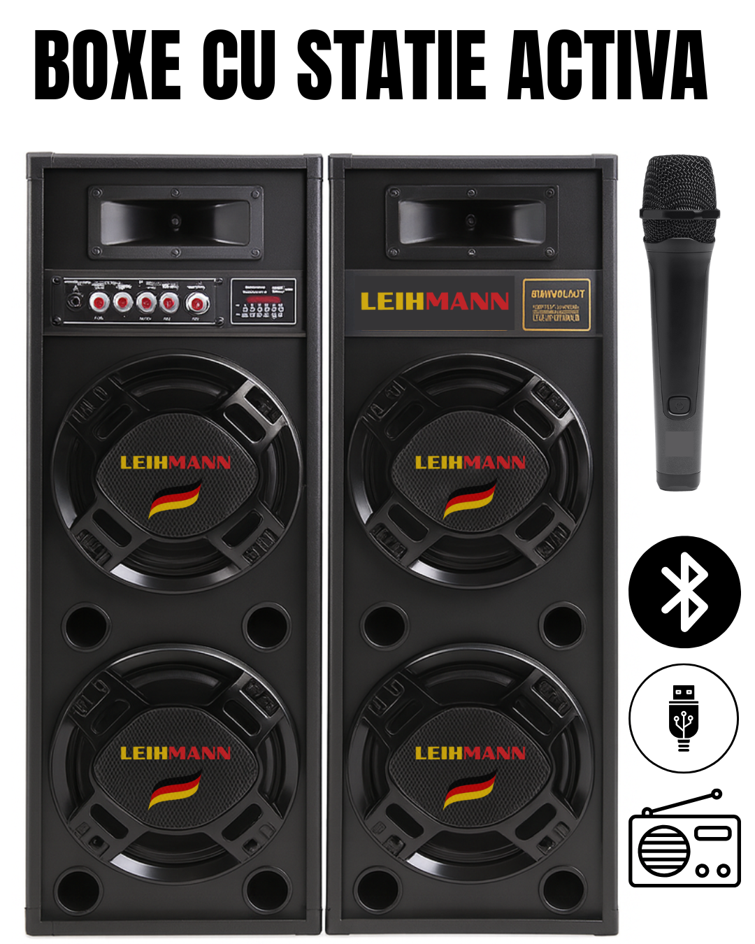 Sistemul audio activ LEIHMANN este conceput pentru evenimente, petreceri, karaoke și sonorizări profesionale. Cu putere ridicată, conectivitate completă și carcase din lemn pentru o acustică excelentă, aceste boxe livrează un sunet clar și puternic chiar și la volum maxim.