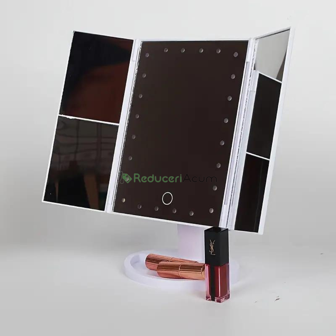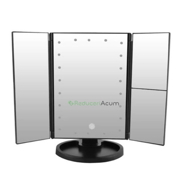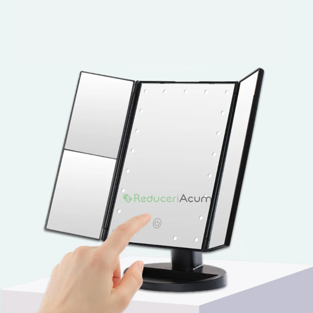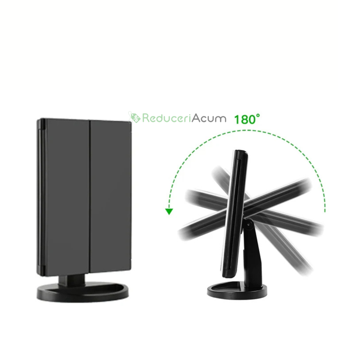 - Oglinda este realizata din plastic de calitate superioara, are 24 de LED-uri de culoare alba, control tactil si rotatie 180 de grade.