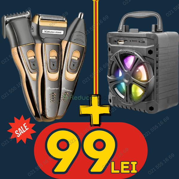 -> Descoperă oferta uluitoare a sezonului: Pachetul de Excelență Auditivă și Estetică, ce îmbină tehnologia audio de vârf cu instrumentele de tuns de cea mai înaltă calitate, totul la un preț incredibil de doar 99 de lei! Dacă îți dorești să ai parte de momente muzicale de neuitat în timp ce îți îngrijești aspectul personal, acest pachet este alegerea perfectă pentru tine.