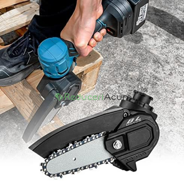 Drujbă cu lanț interschimbabil: Echipată cu un lanț de înaltă calitate, ideal pentru tăierea precisă a lemnului. Sistemul de schimbare rapidă permite comutarea ușoară între funcții, economisind timp și efort.