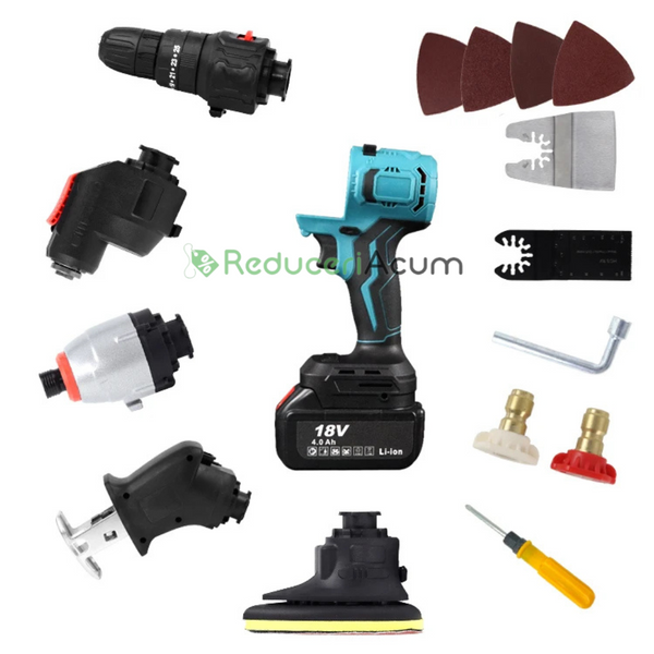 Unealta multifuncțională 6-în-1 de 36V este concepută pentru a satisface cele mai exigente cerințe ale profesioniștilor din construcții și bricolaj. Acest set complet include o gamă de capete interschimbabile care oferă soluții eficiente pentru diverse tipuri de lucrări, reducând nevoia de multiple unelte și economisind spațiu.