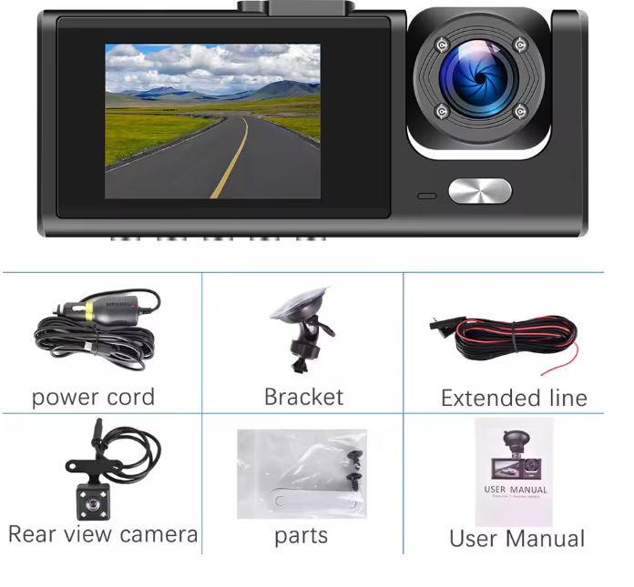 Camera auto BLACK BOX tip oglindă retrovizoare cu două canale oferă înregistrare frontală Full HD 1080p și interioară 720p, ideală pentru siguranța rutieră. Dispune de unghi larg 170°, senzor G, detecție mișcare și înregistrare în buclă. Suportă mai multe limbi și card TF până la 32GB.