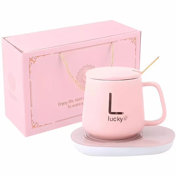 Cana ceramica Inteligenta Lucky pentru Incalzire Automata a Bauturilor, Cafea, Lapte, Ceai, 55°C, cu Capac si Lingurita, Verde Regal, 350 ml