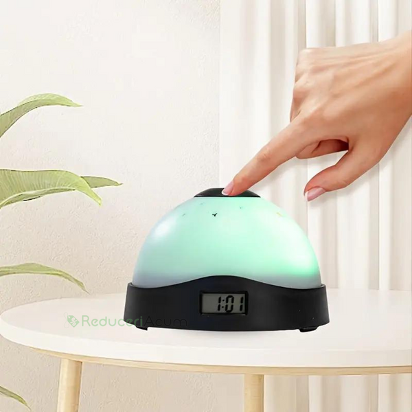 Ceas cu proiectie ora si stele pe tavan, lampa de veghe cu lumina led in 3 culori diferite si joc de lumini de curcubeu.