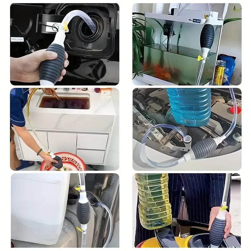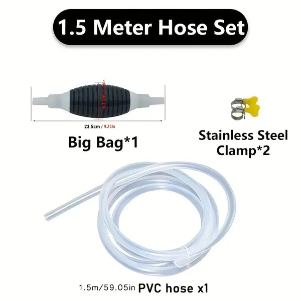 Pompă manuală de sifonare: Pompa de mână cu furtunuri cu debit mare și pompe cu bile cu diametru mare permit un transfer rapid și eficient al lichidelor dintr-un recipient în altul. Este ușor de utilizat, iar designul structural simplu permite o operare fără efort.