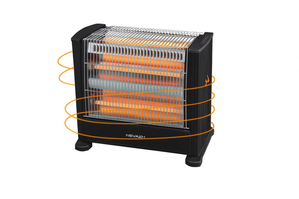 Acest calorifer cu tuburi incandescente este soluția ideala pentru a obtine confort termic rapid si eficient in orice locuinta. Conceput pentru a distribui uniform caldura, aparatul utilizeaza tehnologia de incalzire prin radiatie, care asigura cresterea temperaturii in doar cateva momente de la pornire. Cele trei tuburi incandescente genereaza o caldura placuta, constanta si sigura, fiind ideale pentru dormitoare, livinguri, birouri sau spatii unde este nevoie de un plus de confort imediat. Designul compact permite amplasarea usoara chiar si in incaperi mici, fara a ocupa mult spatiu, iar grilajul metalic frontal ofera protectie suplimentara pentru utilizarea in conditii de siguranta.