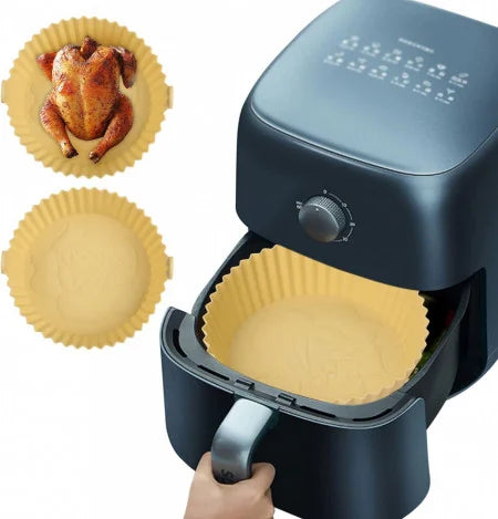 Aceste 3 cosuri din silicon pentru friteuze cu aer sunt antiaderente, reutilizabile si ideale pentru a pregati retete mai sanatoase, fara grasimi. De asemenea, sunt potrivite pentru utilizarea la cuptorul cu microunde si la cuptor. Compatibile cu frigiderul si masina de spalat vase.