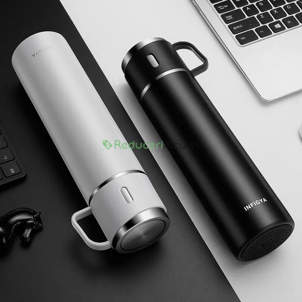 Termosul are o capacitate de 500 ml si poate mentine bauturile calde sau reci pana la 12 ore, in asa mod incat sa poti savura bautura ta preferata la orice ora din zi sau noapte.